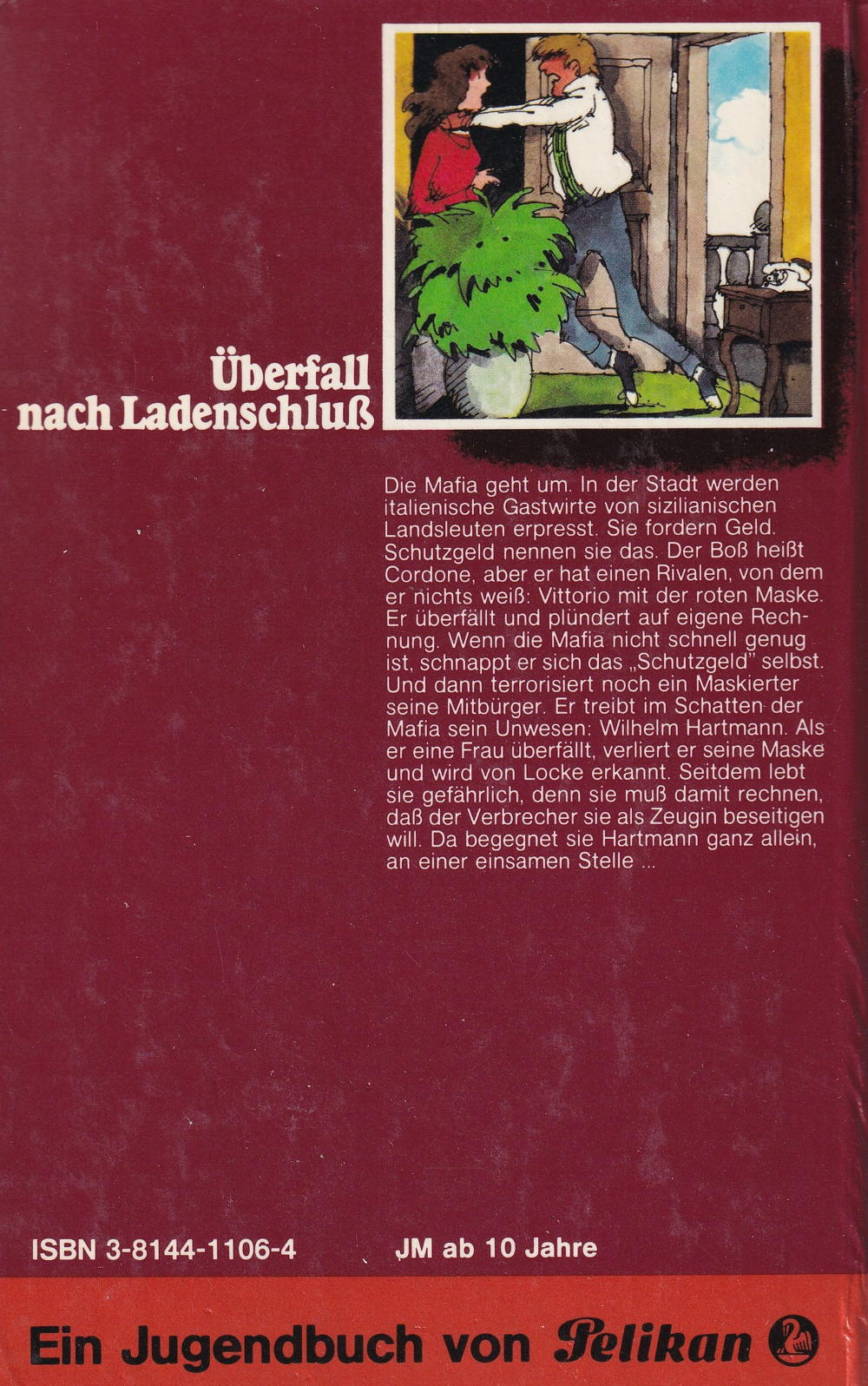 Die Mafia geht um. In der Stadt werden italienische Gastwirte von sizilianischen Landsleuten erpresst. Sie fordern Geld. Schutzgeld nennen sie das. Der Boss heisst Cordone, aber er hat einen Rivalen, von dem er nichts weiss: Vittorio mit der roten Maske. Er überfällt und plündert auf eigene Rechnung. Wenn die Mafia nicht schnell genug ist, schnappt er sich das „Schutzgeld" selbst. Und dann terrorisiert noch ein Maskierter seine Mitbürger. Er treibt im Schatten der Mafia sein Unwesen: Wilhelm Hartmann. Als er eine Frau überfällt, verliert er seine Maske und wird von Locke erkannt. Seitdem lebt sie gefährlich, denn sie muss damit rechnen, dass der Verbrecher sie als Zeugin beseitigen will. Da begegnet sie Hartmann ganz allein, an einer einsamen Stelle...