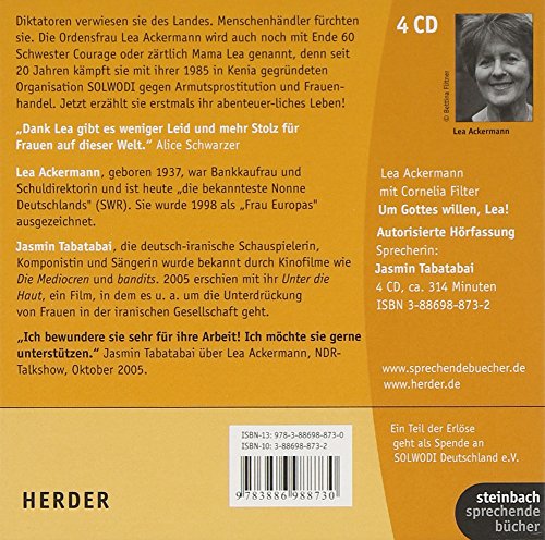 Diktatoren verwiesen sie des Landes. Menschenhändler fürchten sie. Gefahren hat sie nie gescheut. "Um Gottes willen, Lea!" Schon als kleines Mädchen im Saarland bekam sie das zu hören, wenn sie mal wieder ihren Kopf durchsetzen wollte. Die Ordensfrau Lea Ackermann ist auch heute noch mit Ende 60 eine Unbrave: vor allem, wenn es um entrechtete Frauen geht. Die nennen diese "Schwester Courage" zärtlich "Mama Lea". Seit 20 Jahren kämpft sie mit ihrer 1985 in Kenia gegründeten Organisation "Solwodi" gegen Armutsprostitution und Frauenhandel. Jetzt erzählt sie erstmals ihr abenteuerliches Leben.