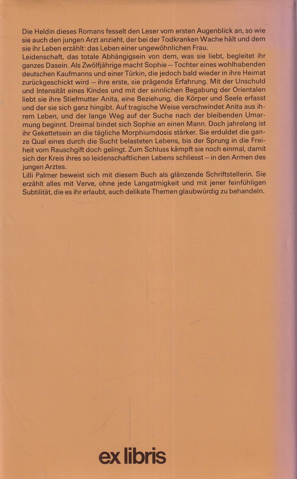 Leidenschaft, das totale Abhängigsein von dem, was sie liebt, begleitet ihr ganzes Dasein. Als Zwölfjährige macht Sophie- Tochter eines wohlhabenden deutschen Kaufmanns und einer Türkin, die jedoch bald wieder in ihre Heimat zurückgeschickt wird - ihre erste, sie prägende Erfahrung. Mit der Unschuld und Intensität eines Kindes und mit der sinnlichen Begabung der Orientalen liebt sie ihre Stiefmutter Anita, eine Beziehung, die Körper und Seele erfasst und der sie sich ganz hingibt. Auf tragische Weise verschwindet Anita aus ihrem Leben, und der lange Weg auf der Suche nach der bleibenden Umarmung beginnt. Dreimal bindet sich Sophie an einen Mann. Doch jahrelang ist ihr Gekettetsein an die tägliche Morphiumdosis stärker. Sie erduldet die ganze Qual eines durch die Sucht belasteten Lebens, bis der Sprung in die Freiheit vom Rauschgift doch gelingt. Zum Schluss kämpft sie noch einmal, damit sich der Kreis ihres so leidenschaftlichen Lebens schliesst- in den Armen des jungen Arztes.
