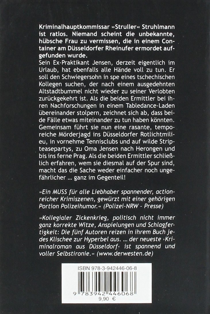 Kriminalhauptkommissar 'Struller' Struhlmann ist ratlos. Niemand scheint die unbekannte, hübsche Tote zu vermissen, die in einem Container am Düsseldorfer Rheinufer ermordet aufgefunden wurde. Sein Ex-Praktikant Jensen, derzeit eigentlich im Urlaub, hat ebenfalls alle Hände voll zu tun. Er soll den Schwiegersohn in spe eines tschechischen Kollegen suchen, der nach einem ausgedehnten Altstadtbummel nicht wieder zu seiner Verlobten zurückgekehrt ist. Als die beiden Ermittler bei ihren Nachforschungen in einem Tabledance-Laden übereinander stolpern, zeichnet sich ab, dass beide Fälle etwas miteinander zu tun haben könnten. Gemeinsam führt sie nun eine rasante, temporeiche Mörderjagd ins Düsseldorfer Rotlichtmilieu, in vornehme Tennisclubs, auf wilde Stripteasepartys und in exklusive Schönheitssalons, zu Oma Jensen nach Herongen und bis ins ferne Prag.