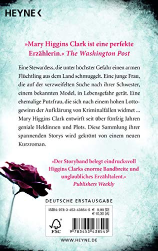 Eine Stewardess, die unter höchster Gefahr einen armen Flüchtling aus dem Land schmuggelt. Eine junge Frau, die auf der verzweifelten Suche nach ihrer Schwester, einem bekannten Model, in Lebensgefahr gerät. Eine frühere Putzfrau, die sich nach einem hohen Lottogewinn der Aufklärung von Kriminalfällen widmet - Mary Higgins Clark entwirft seit über fünfzig Jahren geniale Heldinnen und Plots. Diese Sammlung von spannenden Storys wird gekrönt von einem neuen Kurzroman.