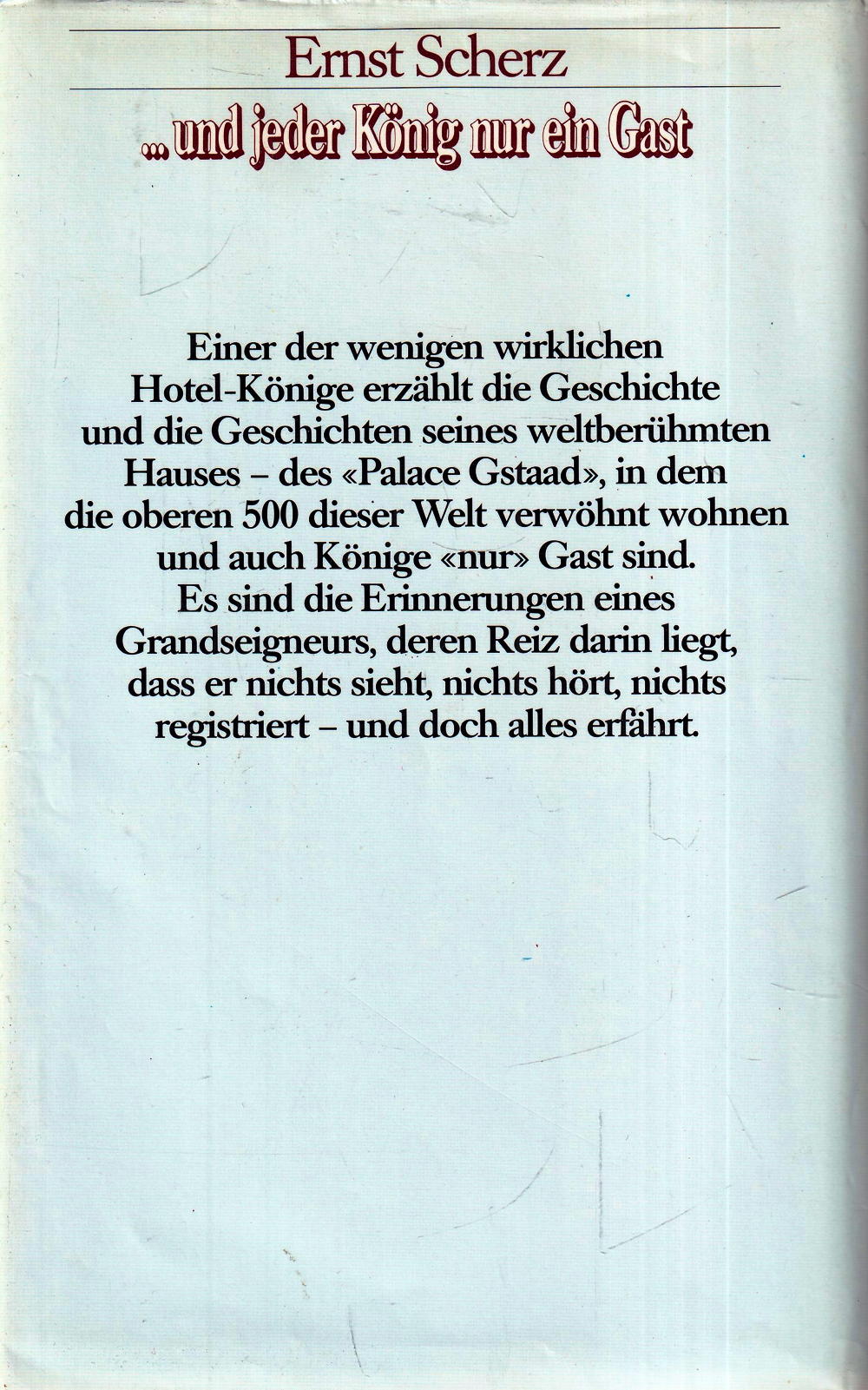 Einer der wenigen wirklichen Hotel-Könige erzählt die Geschichte und die Geschichten seines weltberühmten Hauses – des «Palace Gstaad», in dem die oberen 500 dieser Welt verwöhnt wohnen und auch Könige «nur» Gast sind.