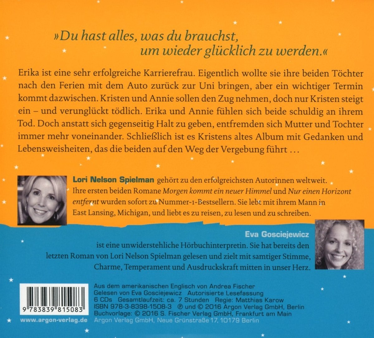 Erika ist eine sehr erfolgreiche Karrierefrau. Eigentlich wollte sie ihre beiden Töchter nach den Ferien mit dem Auto zurück zur Uni bringen, aber ein wichtiger Termin kommt dazwischen. Kristen und Annie sollen den Zug nehmen, doch nur Kristen steigt ein - und verunglückt tödlich. Erika und Annie fühlen sich beide schuldig an ihrem Tod. Doch anstatt sich gegenseitig Halt zu geben, entfremden sich Mutter und Tochter immer mehr voneinander. Schliesslich ist es Kristens altes Album mit Gedanken und Lebensweisheiten, das die beiden auf den Weg der Vergebung führt.