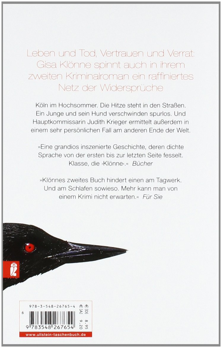'Köln im Hochsommer. Die Hitze steht in den Straßen. Ein Junge und sein Hund verschwinden spurlos. Hauptkommissarin Judith Krieger ermittelt außerdem in einem sehr persönlichen Fall am anderen Ende der Welt: Ihre alte Schulkameradin Charlotte wird in Kanada vermisst. Hat der Mann, mit dem Judith in der kanadischen Wildnis eine leidenschaftliche Affäre beginnt, etwas damit zu tun? Als zu Hause in Köln ein weiterer Junge verschwindet, beginnt für Judith ein doppelter Wettlauf mit der Zeit. Leben und Tod, Vertrauen und Verrat: Gisa Klönne spinnt auch in ihrem zweiten Kriminalroman ein raffiniertes Netz der Widersprüche.