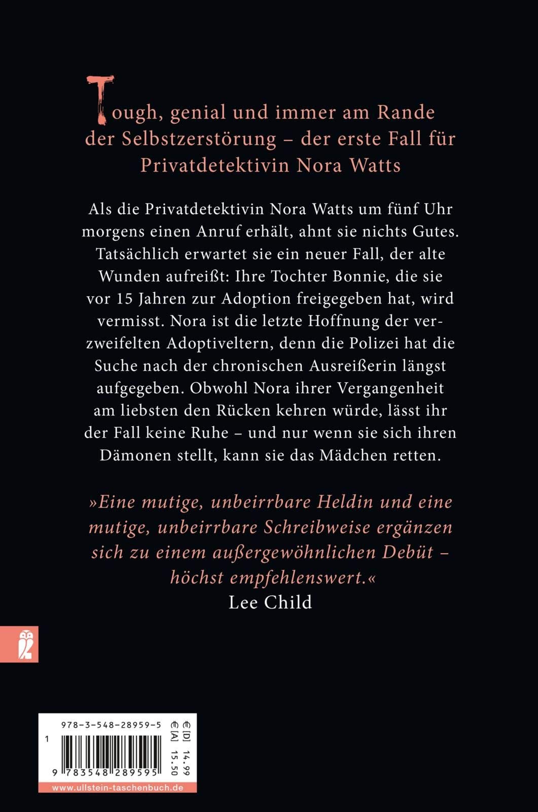 Nora Watts ist die perfekte Jägerin - als ehemaliges Mitglied der Canadian Forces hat sie ein untrügliches Gespür für Lügen. Sie ist die beste Privatdetektivin Kanadas. Doch ihr Leben ist hart, immer wieder verfällt sie dem Alkohol. Sie vertraut niemandem, lebt heimlich im Keller unter dem Detektivbüro in Vancouver und spricht nur mit ihrer Hündin Whisper. Bis ein Paar sie um ihre Hilfe bittet. Ihre Tochter Bonnie ist verschwunden. Nora stellt entsetzt fest, dass es sich um ihre eigene, vor fünfzehn Jahren zur Adoption freigegebene Tochter handelt. Nur wenn sie sich jetzt zum ersten Mal wieder den Menschen öffnet, kann sie sie retten. Aber Bonnies Entführer sind auch hinter ihr her, und bald wird die Jägerin zur Gejagten ...