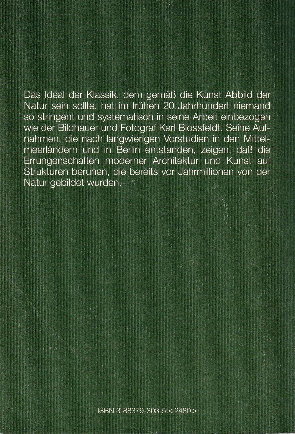 Das Ideal der Klassik, dem gemäss die Kunst Abbild der Natur sein sollte, hat im frühen 20. Jahrhundert niemand so stringent und systematisch in seine Arbeit einbezogen wie der Bildhauer und Fotograf Karl Blossfeldt. Seine Aufnahmen, die nach langwierigen Vorstudien in den Mittelmeerländern und in Berlin entstanden, zeigen, dass die Errungenschaften moderner Architektur und Kunst auf Strukturen beruhen, die bereits vor Jahrmillionen von der Natur gebildet wurden.