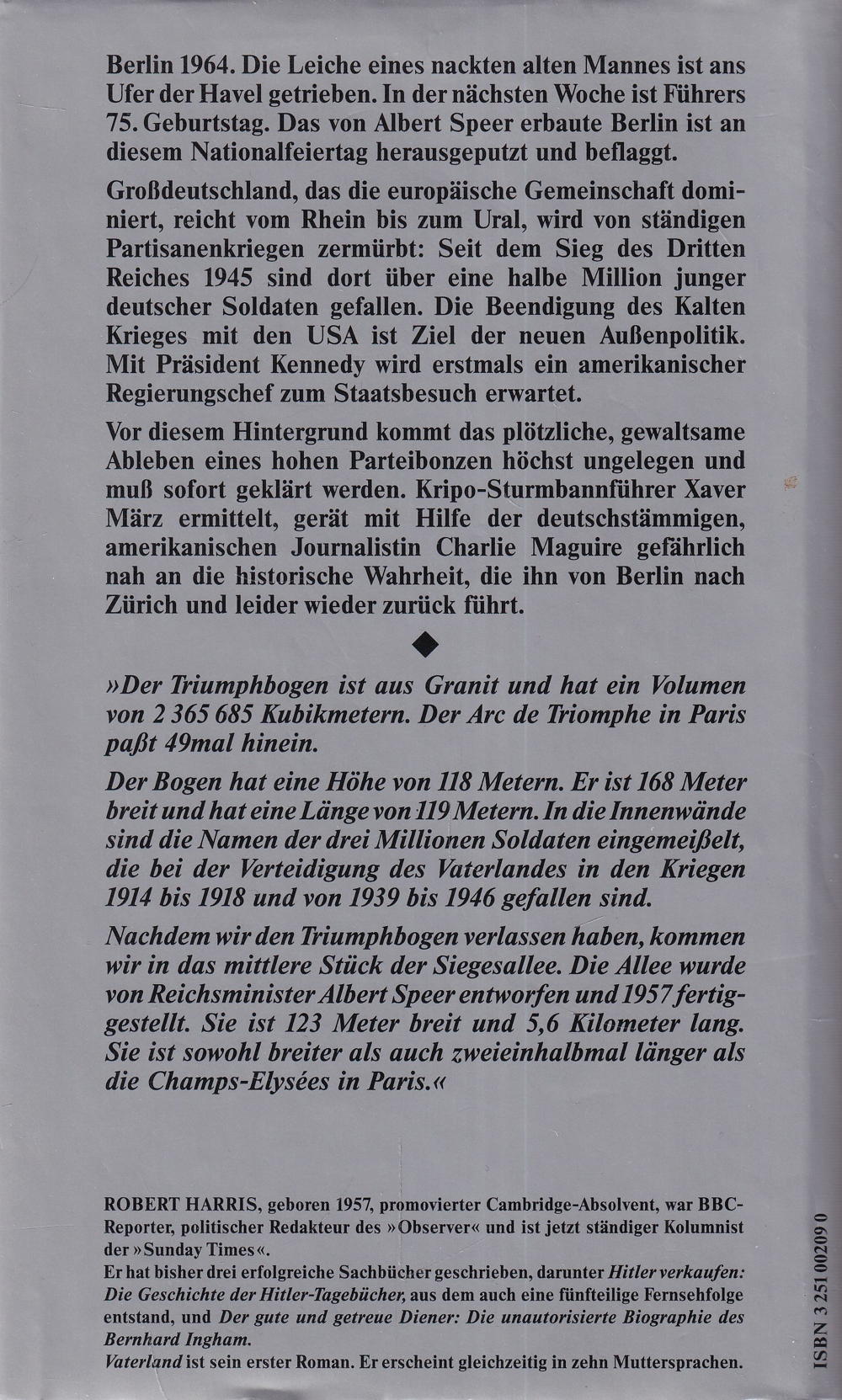 Berlin 1964. Die Leiche eines nackten alten Mannes ist ans Ufer der Havel getrieben. In der nächsten Woche ist Führers 75. Geburtstag. Das von Albert Speer erbaute Berlin ist an diesem Nationalfeiertag herausgeputzt und beflaggt.