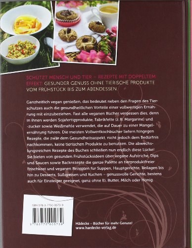 Ganzheitlich vegan geniessen, das bedeutet neben den Fragen des Tierschutzes auch die gesundheitlichen Vorteile einer vollwertigen Ernährung mit einzubeziehen. Fast alle veganen Bücher vergessen dies, denn in ihnen werden Sojafertigprodukte, Fabrikfette (z.B. Margarine) und -zucker sowie Weissmehle verwendet, die auf Dauer zu einer Mangelernährung führen. Die meisten Vollwertkochbücher liefern hingegen Rezepte, die zwar dem Gesundheitsaspekt, nicht jedoch dem Bedürfnis nachkommen, keine tierischen Produkte zu benutzen. Die abwechslungsreichen Rezepte des Buches schliessen nun endlich diese Lücke! Sie orientieren sich an der Vollwerternährung Dr. med. Max Otto Brukers und bieten von gesunden Frühstücksideen über vegane Aufstriche, Dips und Saucen sowie Backrezepte die ganze Palette an tierproduktfreier Frischkost und veganen Kochrezepten für Suppen, Hauptgerichte, Beilagen bis hin zu Desserts, Süssspeisen und Kuchen – genussvolle Gerichte ganz ohne Ei, Milch oder Honig.