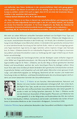 Peter J. D’Adamo ist der Wegbereiter eines neuen und revolutionären Ansatzes in der Ernährung – ein Ansatz, der in direktem Zusammenhang mit dem Bluttypen eines Menschen steht. In «Verändere Dein genetisches Schicksal» führt er seine Forschung auf die nächste Stufe, indem er sechs genetische Typen bestimmt. Egal ob Jäger, Sammler, Lehrer, Explorer, Krieger oder Nomade, Peter J. D’Adamo deckt bisher versteckte genetische Stärken und Schwächen auf und stellt jedem Menschen eine genauen Ernährungs- und Lebensführungsplan zur Verfügung.