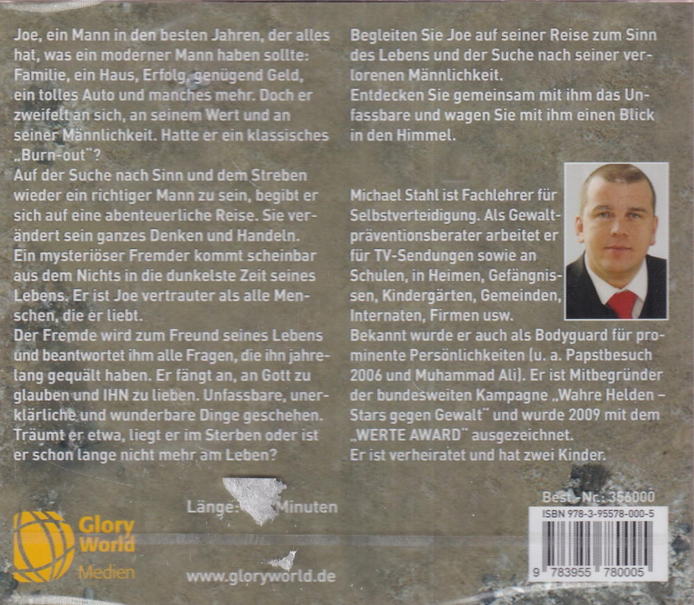 Auf der Suche nach Sinn und dem Streben wieder ein richtiger Mann zu sein, begibt er sich auf eine abenteuerliche Reise. Sie verändert sein ganzes Denken und Handeln. Ein mysteriöser Fremder kommt scheinbar aus dem Nichts in die dunkelste Zeit seines Lebens. Er ist Joe vertrauter als alle Menschen, die er liebt. Der Fremde wird zum Freund seines Lebens und beantwortet ihm alle Fragen, die ihn jahrelang gequält haben. Er fängt an, an Gott zu glauben und IHN zu lieben. Unfassbare, unerklärliche und wunderbare Dinge geschehen. Träumt er etwa, liegt er im Sterben oder ist er schon lange nicht mehr am Leben? Begleiten Sie Joe auf seiner Reise zum Sinn des Lebens und der Suche nach seiner verlorenen Männlichkeit. Entdecken Sie gemeinsam mit ihm das Unfassbare und wagen Sie mit ihm einen Blick in den Himmel.