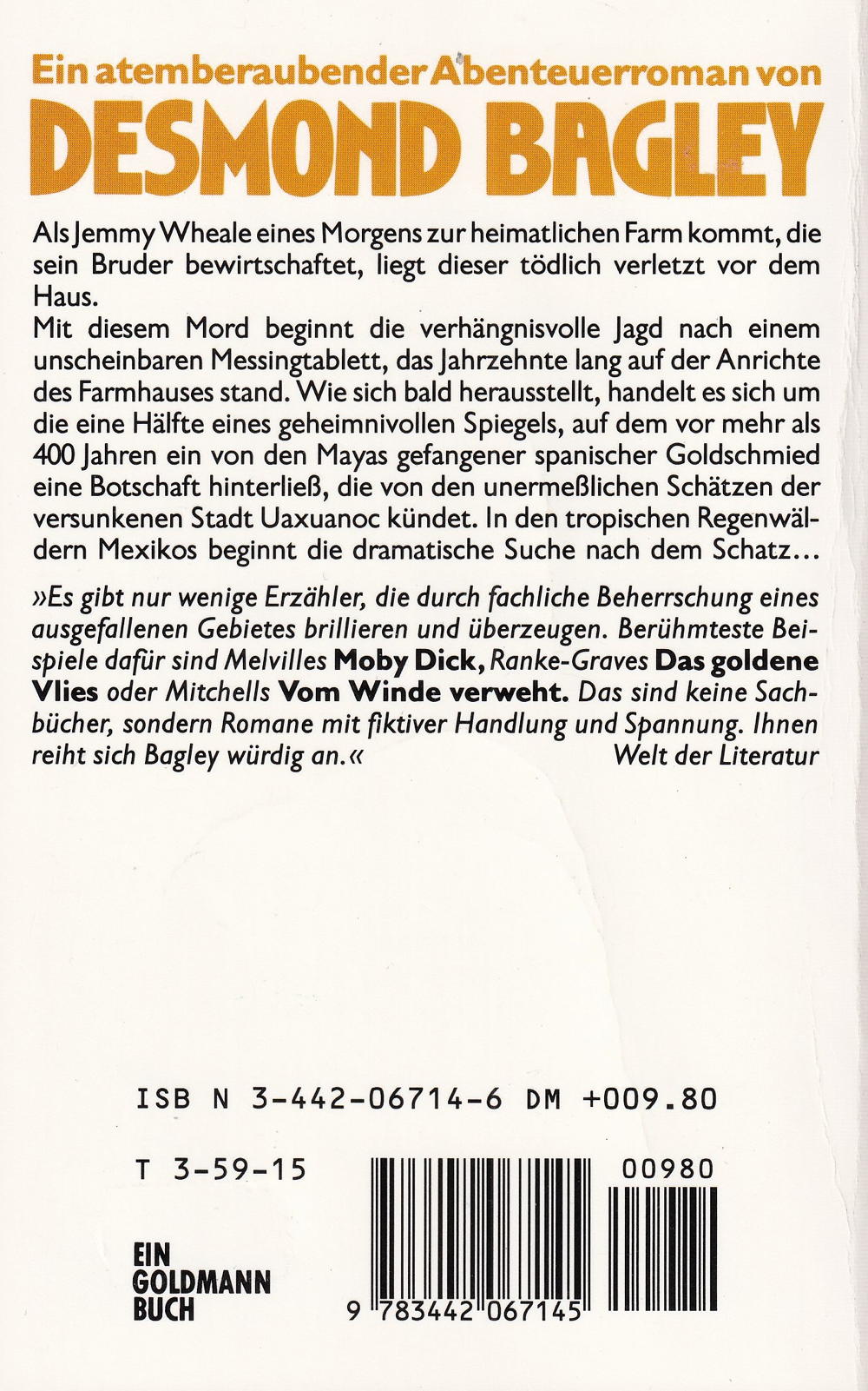 Mit diesem Mord beginnt die verhängnisvolle Jagd nach einem unscheinbaren Messingtablett, das Jahrzehnte lang auf der Anrichte des Farmhauses stand. Wie sich bald herausstellt, handelt es sich um die eine Hälfte eines geheimnivollen Spiegels, auf dem vor mehr als 400 Jahren ein von den Mayas gefangener spanischer Goldschmied eine Botschaft hinterliess, die von den unermesslichen Schätzen der versunkenen Stadt Uaxuanoc kündet. In den tropischen Regenwäldern Mexikos beginnt die dramatische Suche nach dem Schatz...