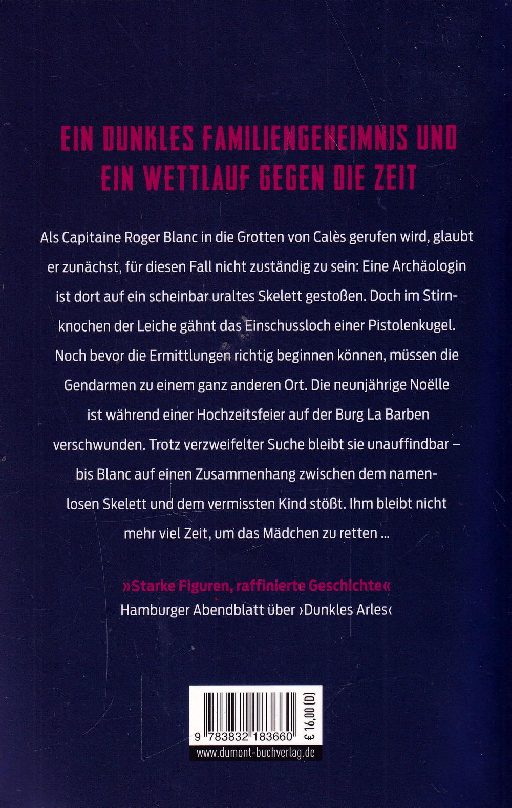 Bevor Blanc mit den Ermittlungen richtig beginnen kann, wird er zu einem dramatischen Notfall gerufen. In der Burg La Barben ist während einer Hochzeitsfeier die neunjährige Noëlle verschwunden. Noch in der Nacht wird ein Verdächtiger verhaftet, gegen den scheinbar alle Indizien sprechen. Doch der Mann leugnet - und das Mädchen bleibt unauffindbar. Während sich seine Kollegen und Frankreichs Medien auf den Verhafteten konzentrieren, findet Blanc heraus, dass Noëlles Schicksal untrennbar mit dem namenlosen Skelett von Calès verbunden ist. So fahndet er nach einem Täter, der offenbar seit Jahrzehnten immer wieder Verbrechen begeht. Dafür gräbt Blanc sich tief in die finstere Vergangenheit einer Familie ein - und entdeckt, dass auf der Burg an jenem Abend viele Menschen ein Motiv gehabt haben könnten, die kleine Noëlle für immer verschwinden zu lassen ...