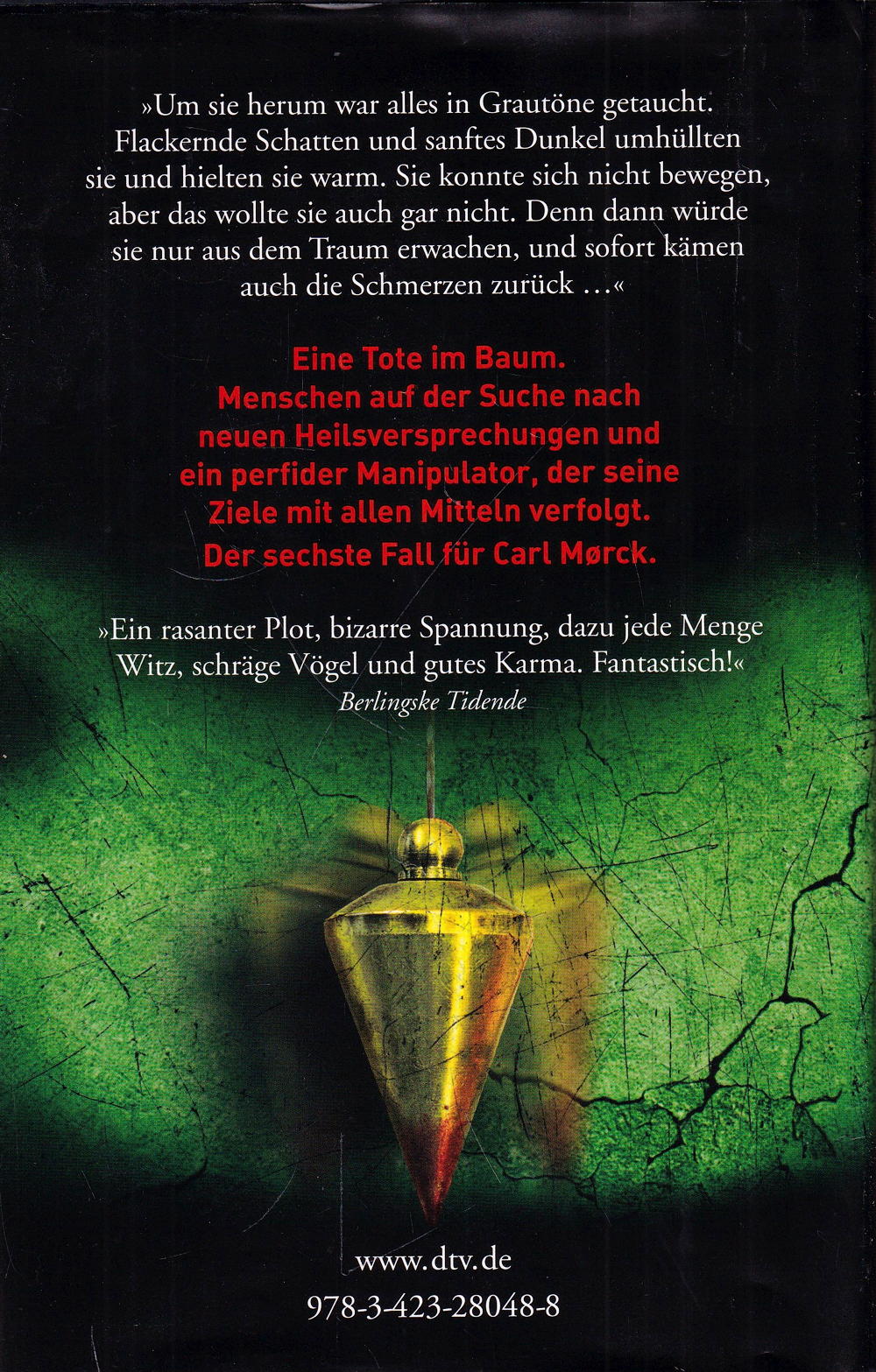 Eine Tote in einem Baum. Menschen auf der Suche nach Heilsversprechen in einer krisengeschüttelten, globalisierten Welt. Pseudoreligiöse Glaubensvereinigungen, verschwundene Frauen und ein ungeklärter Todesfall, dessen Spuren zu einem hochintelligenten, charismatischen Manipulator mit ehrgeizigen Zielen führen. Der sechste Fall für Carl Mørck und sein Team vom Sonderdezernat Q führt alle Beteiligten weit über ihre Grenzen – beruflich und privat.