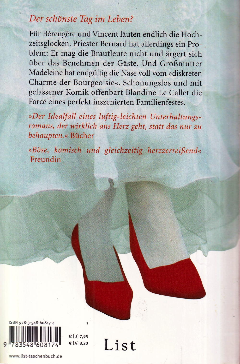 Für Bérengère und Vincent läuten endlich die Glocken. Während sie und ihre Gäste sich auf dem Weg zur Kirche befinden, hat Priester Bernard bereits alles vorbereitet. In der Hochzeitssaison absolviert er hier eine Eheschliessung nach der anderen, denn sein schönes Gotteshaus, eine Perle der romanischen Baukunst, ist die perfekteKulisse. Heute hat Priester Bernard allerdings ein Problem: Er mag die Brautleute nicht und ärgert sich über das Benehmen der Gäste. Als er dann auch noch mit ansehen muss, wie ein behindertes Mädchen aus der ersten Reihe nach hinten versetzt wird, weil sie das perfekte Familienbild stört, sinnt er auf Rache. Auch Grossmutter Madeleine hat sich anlässlich der Vermählung ihrer Enkelin etwas vorgenommen: Mit ihrer Ehrlichkeit offenbart sie am Ende einmal mehr den "diskreten Charme der Bourgeoisie" die Falschheit dieser feinen Gesellschaft, ihre Lebenslügen und den ausgeprägten Hang zum äusseren Schein. Ein erfrischendes Buch über die Liebe.