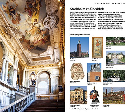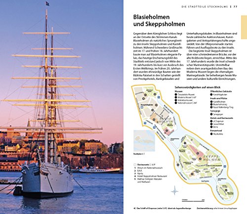 Die wunderschönen Seenlandschaften rund um Stockholm erstrecken sich bis weit in den Stadtkern hinein. Uferpromenaden und Parkanlagen wechseln sich ab mit historischen Vierteln und belebten Einkaufsstrassen und verleihen der Stadt ihre unvergleichliche Atmosphäre. Die interessantesten Routen für Spaziergänge, die schönsten Bootsausflüge und viele weitere Highlights in Stockholm und seiner Umgebung finden Sie in diesem Vis-à-Vis-Reiseführer. Dank 13-seitigem Stadtplan und gezeichneten Spaziergängen finden Sie sich in der schwedischen Hauptstadt mühelos zurecht. Viele wichtige Sehenswürdigkeiten wie das Königliche Schloss, das Vasamuseet oder das Stadshuset werden als Aufrisszeichnungen dargestellt und detailliert beschrieben. Natürlich dürfen auch passende Hotel-, Restaurant- und Ausflugstipps-Tipps nicht fehlen: vom Schiffshotel mit geräumigen Kabinen über das Restaurant mit traditionell schwedischer Küche in der City bis zu Unternehmungen, die auch für Kinder interessant sind. Ausserdem gibt es Hintergründe und Wissenswertes zum schwedischen Design und zur Architektur. Erstmalig bei einem Reiseführer gibt es ein Mini-Kochbuch zum Herausnehmen mit typischen Gerichten der Stadt. Die hervorragenden Abbildungen - exakte Schnittzeichnungen, 3D-Zeichnungen der spannendsten Stadtteile aus der Vogelperspektive und Übersichtskarten - erleichtern Ihnen die Orientierung vor Ort. Der ausführliche Praxisteil bietet aktuelle Angaben zu Hotels, Restaurants, Shopping, Nachtleben und Unterhaltung sowie praktische Tipps zu Verkehrsmitteln, Öffnungszeiten und vieles mehr.