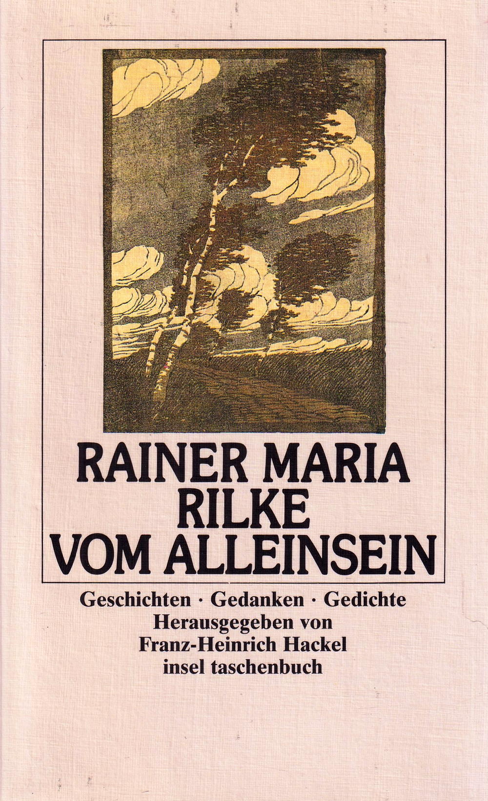 Geschichten, Gedanken und Gedichte sind zum Thema Vom Alleinsein in dieser Auswahl versammelt, deren Titel einer Einzelausgabe eines Briefes von Rainer Maria Rilke an Jomar Forste, den Zeichner und Architekten, geschrieben 1915, entspricht. Die Auswahl zeigt, wie Rilke das Schicksal des Alleinseins nachvollziehen kann. Die Gedichte, Geschichten und Auszüge aus Briefen geben aber auch hilfreiche Hinweise auf verborgene Gesetzlichkeiten.