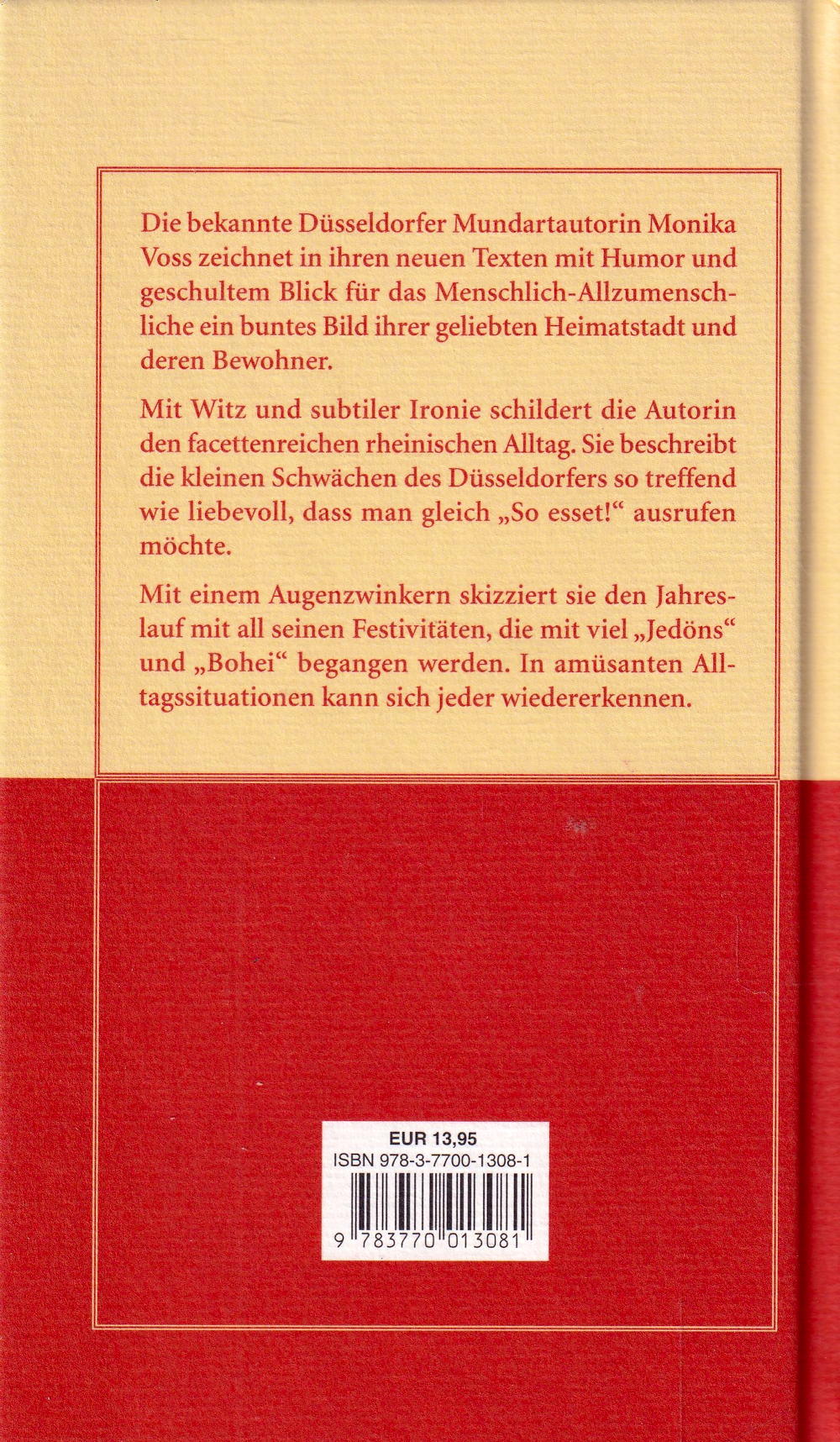 Mit Witz und subtiler Ironie schildert die Autorin den facettenreichen rheinischen Alltag in der Landeshauptstadt. Dabei beschreibt sie die kleinen Schwächen ihrer Düsseldorfer Mitbürger so treffend wie liebevoll, dass man gleich „So esset!“ ausrufen möchte.