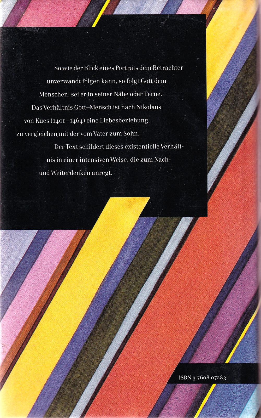 So wie der Blick eines Porträts dem Betrachter folgt Gott dem unverwandt folgen kann, so Menschen, sei er in seiner Nähe oder Ferne. Das Verhältnis Gott-Mensch ist nach Nikolaus von Kues (1401-1464) eine Liebesbeziehung, vergleichen mit der vom Vater zum Sohn.