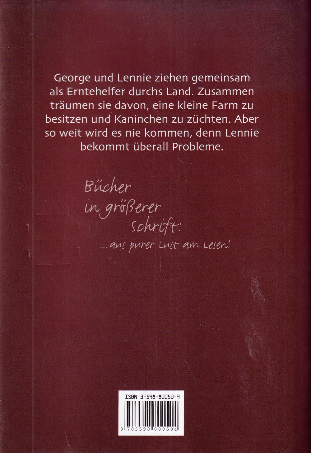 George und Lennie ziehen gemeinsam als Erntehelfer durchs Land. Zusammen träumen sie davon, eine kleine Farm zu besitzen und Kaninchen zu züchten. Aber so weit wird es nie kommen, denn Lennie bekommt überall Probleme.