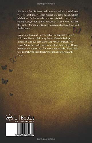Wir beurteilen die Sitten und Lebensverhältnisse, welche vor vier- bis fünfhundert Jahren herrschten, gerne nach heutigen Massstäben. Deshalb erscheint uns das Zeitalter der Hexenverbrennungen als ein dunkles und düsteres. Aber das ist falsch! Es war die Zeit grosser Namen wie Luther, Kolumbus, Bach, da Vinci und Shakespeare! Um die wahren Hintergründe von Hexenverbrennungen, Hexenwahn und anderen Ereignissen zu verstehen, ist ein Studium der Originalquellen am besten geeignet. Deshalb gibt es die Schrift "Von Unholden und Hexen" nun endlich in einer lesbaren Bearbeitung. Sie gehört zu den ersten Hexentraktaten, die nach Bekanntgabe der Hexenbulle Papst Innozenz' VIII. aus dem Jahre 1484 verfasst wurden. Nur kurze Zeit vorher, 1487, war der berühmt-berüchtigte Hexenhammer der Inquisitoren Heinrich Institoris und Jacob Sprenger erschienen. Mit diesem wurde auch das Werk Molitors, das zuerst in Latein und noch im gleichen Jahr auch in deutscher Sprache erschien, als massgebliches Regelwerk zur Hexenfrage sehr bekannt. Es erlebte nach seinem ersten Erscheinen 1489 bis ins Jahr 1576 noch zahlreiche Nachdrucke.