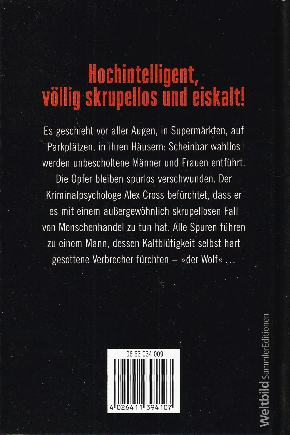 Es geschieht vor aller Augen, in Supermärkten, auf Parkplätzen, in ihren Häusern: Scheinbar wahllos werden unbescholtene Männer und Frauen entführt. Die Opfer bleiben spurlos verschwunden. Der Kriminalpsychologe Alex Cross befürchtet, dass er es mit einem aussergewöhnlich skrupellosen Fall von Menschenhandel zu tun hat. Alle Spuren führen zu einem Mann, dessen Kaltblütigkeit selbst hart gesottene Verbrecher fürchten – »der Wolf«...