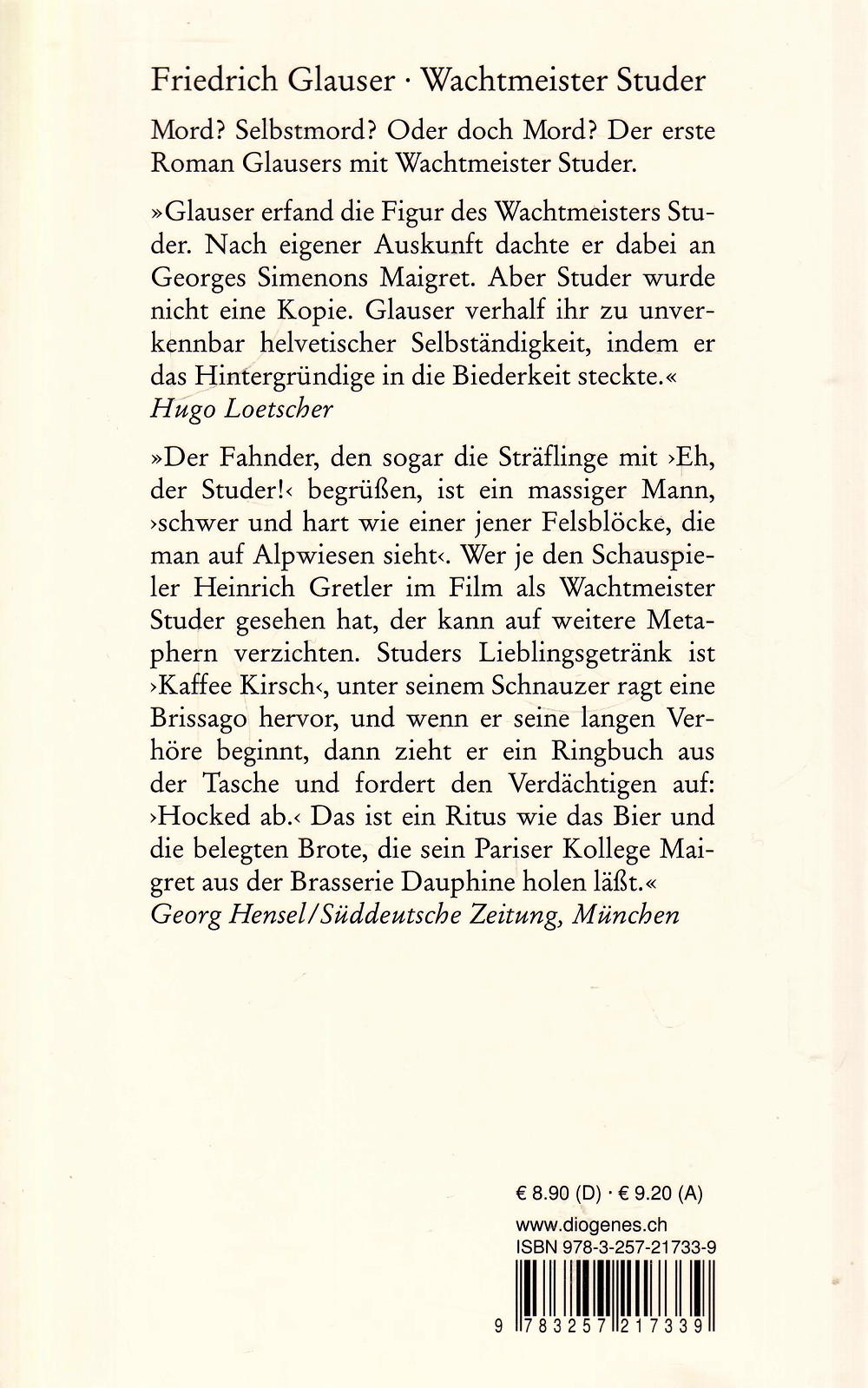Mord? Selbstmord? Oder doch Mord? Der Vertreter Witschi ist tot, und Wachtmeister Studer betritt die Bühne der Kriminalliteratur. Im kleinen Schweizer Dorf Gerzenstein wissen alle mehr, als sie zu sagen bereit sind. Und an die Schuld des Hauptverdächtigen kann Studer einfach nicht glauben.