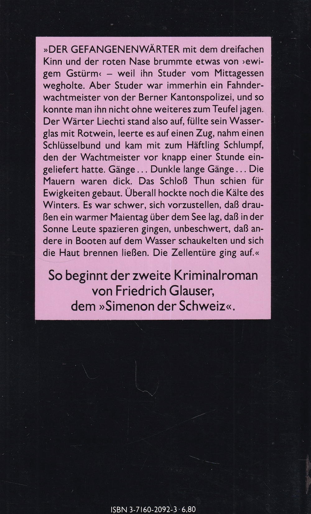 Der Mord im Gerzensteiner Wald, wo der Handelsreisende Witschi erschossen aufgefunden worden ist, scheint ein Routinefall zu sein: Der Verdächtige, ein Vorbestrafter, der im übrigen ein Liebesverhältnis mit der Tochter des Ermordeten hat, sitzt bereits in Untersuchungshaft auf dem Schloß Thun. Sein Versuch, sich in der Zelle zu erhängen, wird von Studer, Fahnder der Berner Kantonspolizei, im letzten Moment vereitelt. Was als Schuldbekenntnis ausgelegt werden könnte, wird für Studer zum Ausgangspunkt für seinen Kampf um Schlumpf, von dessen Unschuld er überzeugt ist.
