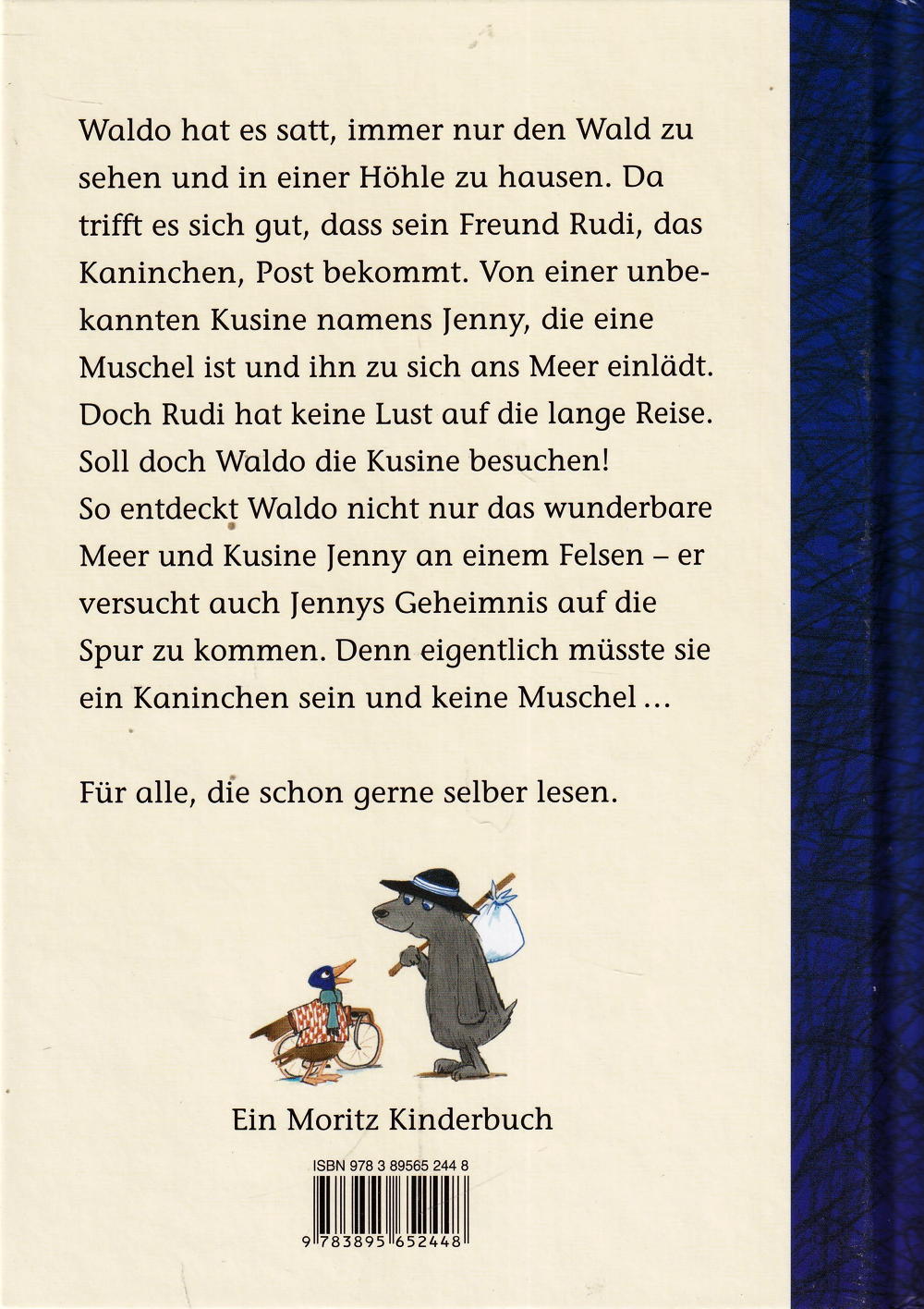 Waldo, der Bär, hat es satt, immer nur den Wald zu sehen und in einer Höhle zu hausen. Da trifft es sich gut, dass sein Kaninchenfreund Rudi Post von einer unbekannten Kusine namens Jenny bekommt. Jenny ist eine Muschel und lädt ihn zu sich ans Meer ein. Doch Rudi hat keine Lust auf eine solch lange Reise. Soll doch Waldo die Kusine besuchen! Und so geschieht es. An einem Felsen am Meer lernt Waldo Jenny kennen - und versucht ihr Geheimnis zu lüften. Denn eigentlich müsste sie ja ein Kaninchen sein und keine Muschel. Wie gut, dass ihm dabei der Prinz von Einsweiter beisteht - denn mit ihm gewinnt Waldo nicht nur einen neuen Freund, sondern er beginnt auch ein ganz neues Leben. - Eine Geschichte voller Spannung, Witz und Überraschungen!
