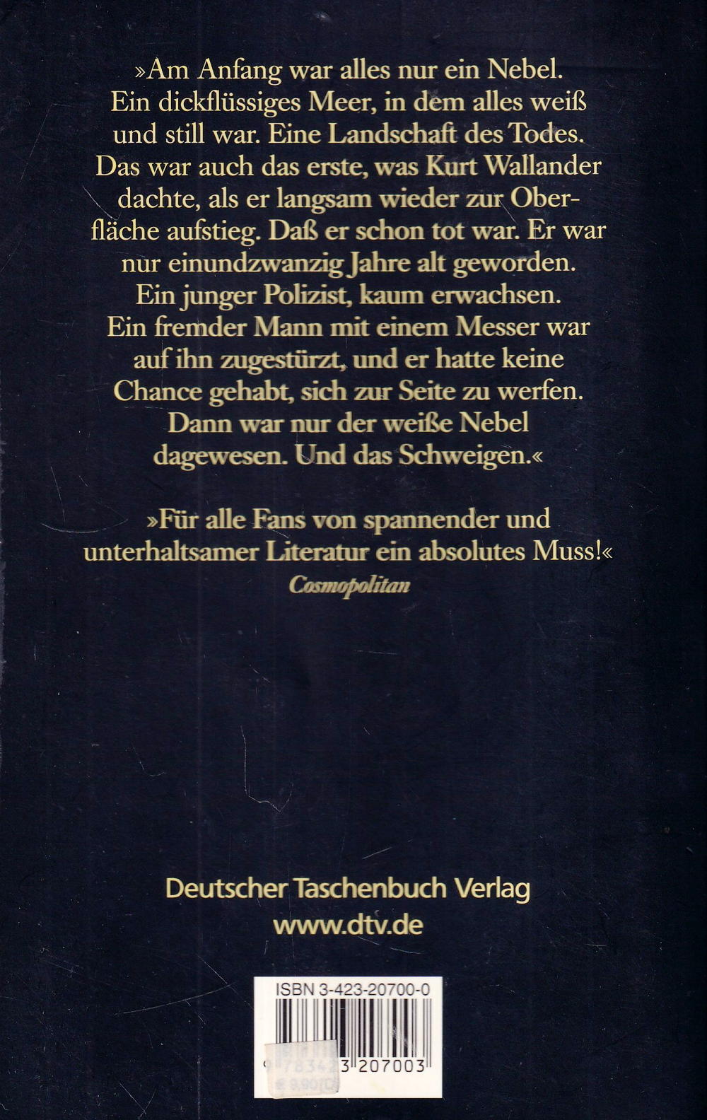 Das war auch das erste, was Kurt Wallander dachte, als er langsam wieder zur Oberfläche aufstieg. Dass er schon tot war. Er war nur einundzwanzig Jahre alt geworden.