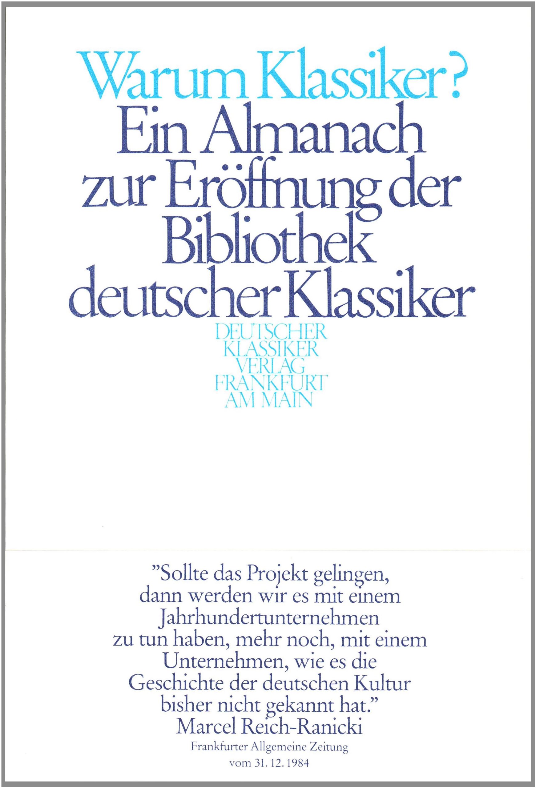 Ein Almanach zur Eröffnungsedition der Bibliothek deutscher Klassiker