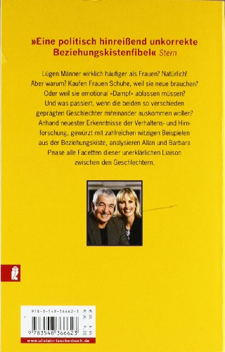 Lügen Männer wirklich häufiger als Frauen? Natürlich! Aber warum? Kaufen Frauen Schuhe, weil sie neue brauchen? Oder weil sie emotional 'Dampf' ablassen müssen? Und was passiert, wenn die beiden so verschieden geprägten Geschlechter miteinander auskommen wollen? Anhand neuester Erkenntnisse der Verhaltens- und Hirnforschung, gewürzt mit zahlreichen witzigen Beispielen aus der Beziehungskiste, analysieren Allan und Barbara Pease alle Facetten dieser unerklärlichen Liaison zwischen den Geschlechtern. Wenn Sie Allan & Barbara Pease als Redner buchen möchten, kontaktieren Sie bitte die Econ Referenten-Agentur.
