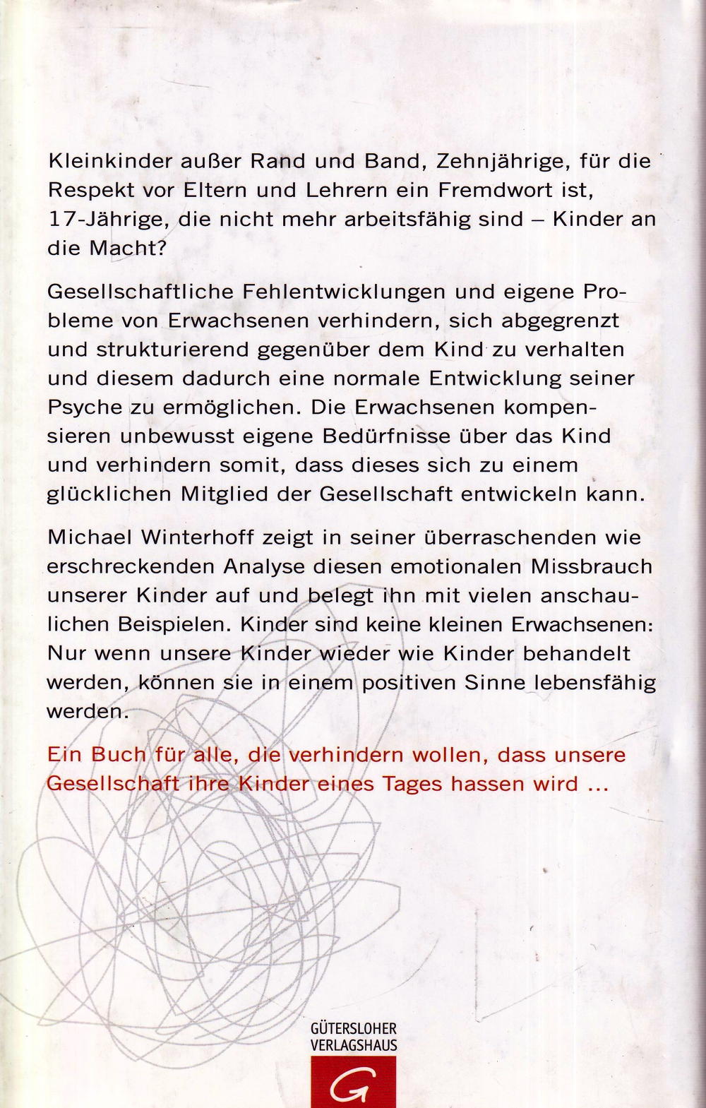 Michael Winterhoff zeigt in seiner überraschenden wie erschreckenden Analyse diesen emotionalen Missbrauch unserer Kinder auf und belegt ihn mit vielen anschaulichen Beispielen. Kinder sind keine kleinen Erwachsenen: Nur wenn unsere Kinder wieder wie Kinder behandelt werden, können sie in einem positiven Sinne lebensfähig werden.