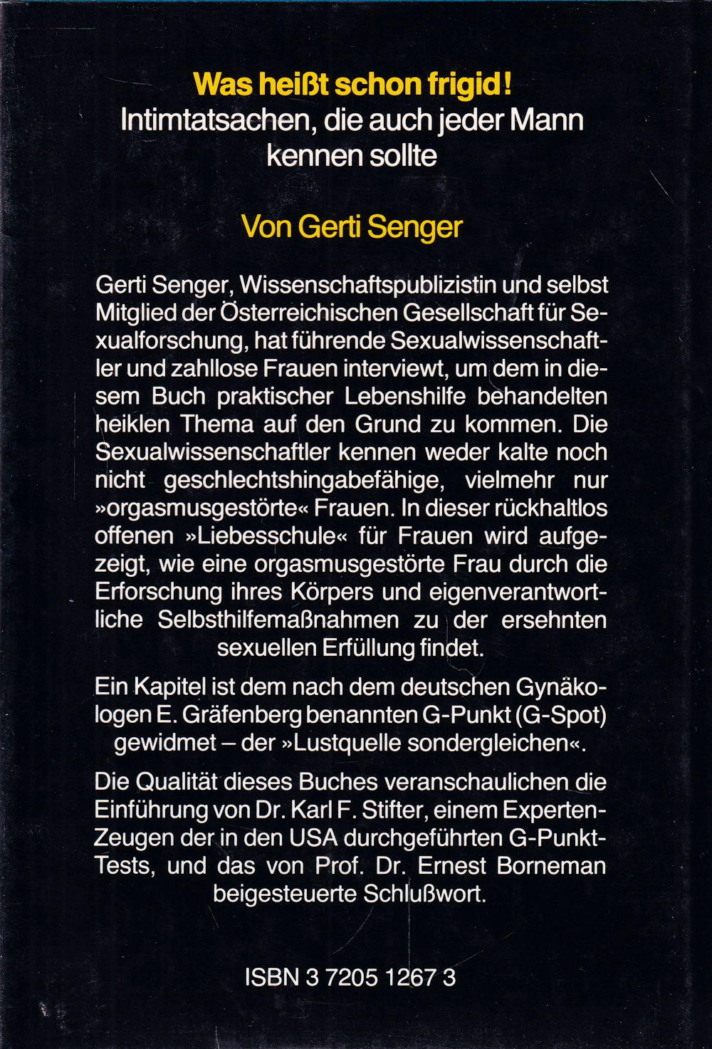 Gerti Senger, Wissenschaftspublizistin und selbst Mitglied der Österreichischen Gesellschaft für Sexualforschung, hat führende Sexualwissenschaftler und zahllose Frauen interviewt, um dem in diesem Buch praktischer Lebenshilfe behandelten heiklen Thema auf den Grund zu kommen. Die Sexualwissenschaftler kennen weder kalte noch nicht geschlechtshingabefähige, vielmehr nur »orgasmusgestörte« Frauen. In dieser rückhaltlos offenen »Liebesschule« für Frauen wird aufgezeigt, wie eine orgasmusgestörte Frau durch die Erforschung ihres Körpers und eigenverantwortliche Selbsthilfemassnahmen zu der ersehnten sexuellen Erfüllung findet.