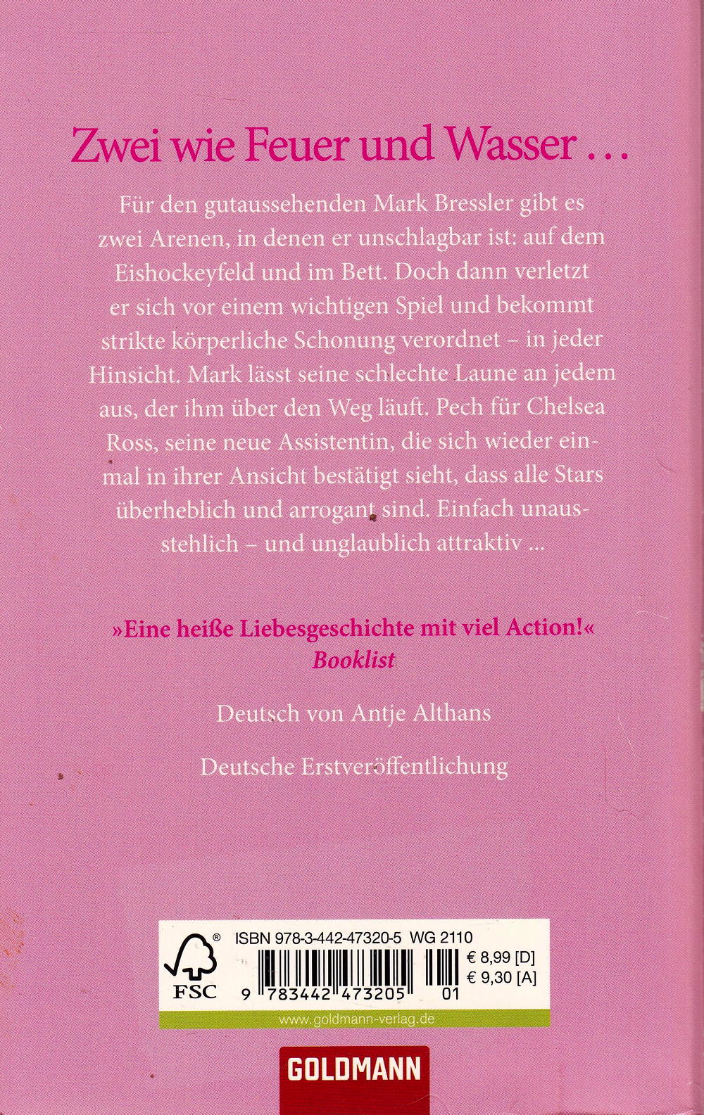 Für den gut aussehenden Mark Bressler gibt es zwei Arenen, in denen er unschlagbar ist: auf dem Eishockeyfeld und im Bett. Bis er sich vor einem wichtigen Spiel verletzt - und strikte körperliche Schonung - in jeder Hinsicht - verordnet bekommt. Mark lässt seine schlechte Laune an jedem aus, der ihm über den Weg läuft. Pech für Chelsea Ross, seine neue Assistentin, für die sich wieder einmal bestätigt, dass alle Stars überheblich und arrogant sind. Einfach unausstehlich - und unglaublich anziehend ...