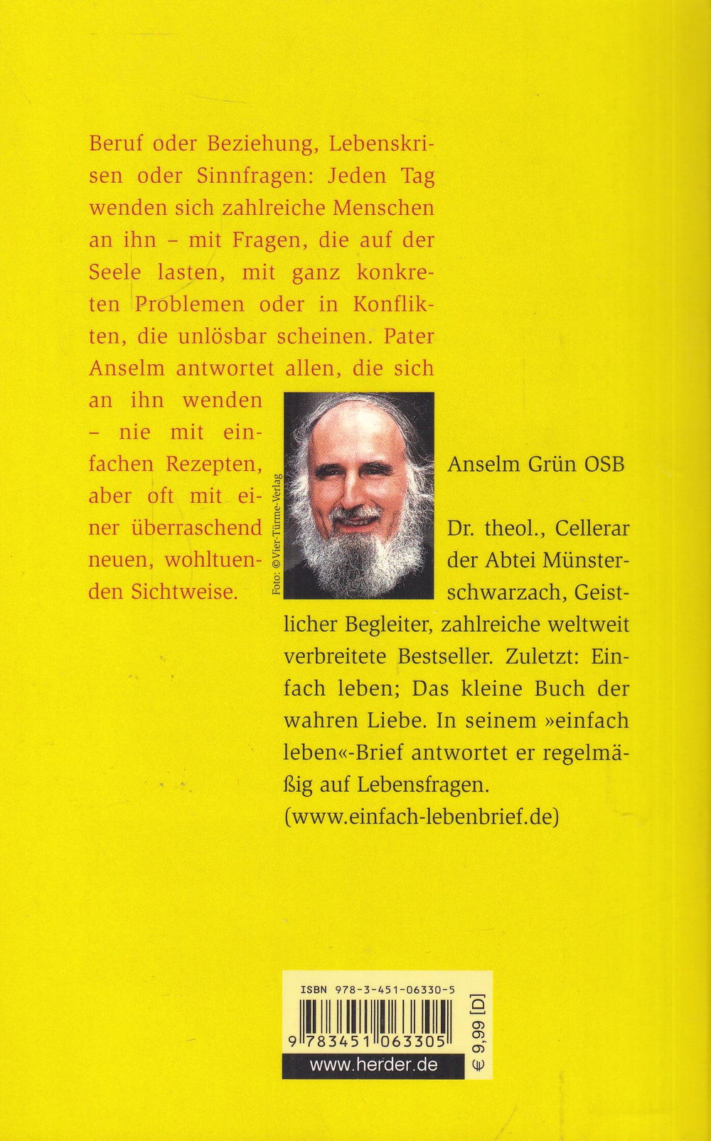 Wenn mir alles über den Kopf wächst? Wenn ich keine Zeit mehr für mich selber finde? Wenn der Chef mich mobbt? Wenn die Beziehung in der Krise steckt und ich nicht weiter weiss? Viele suchen bei Anselm Grün Rat und Hilfe.