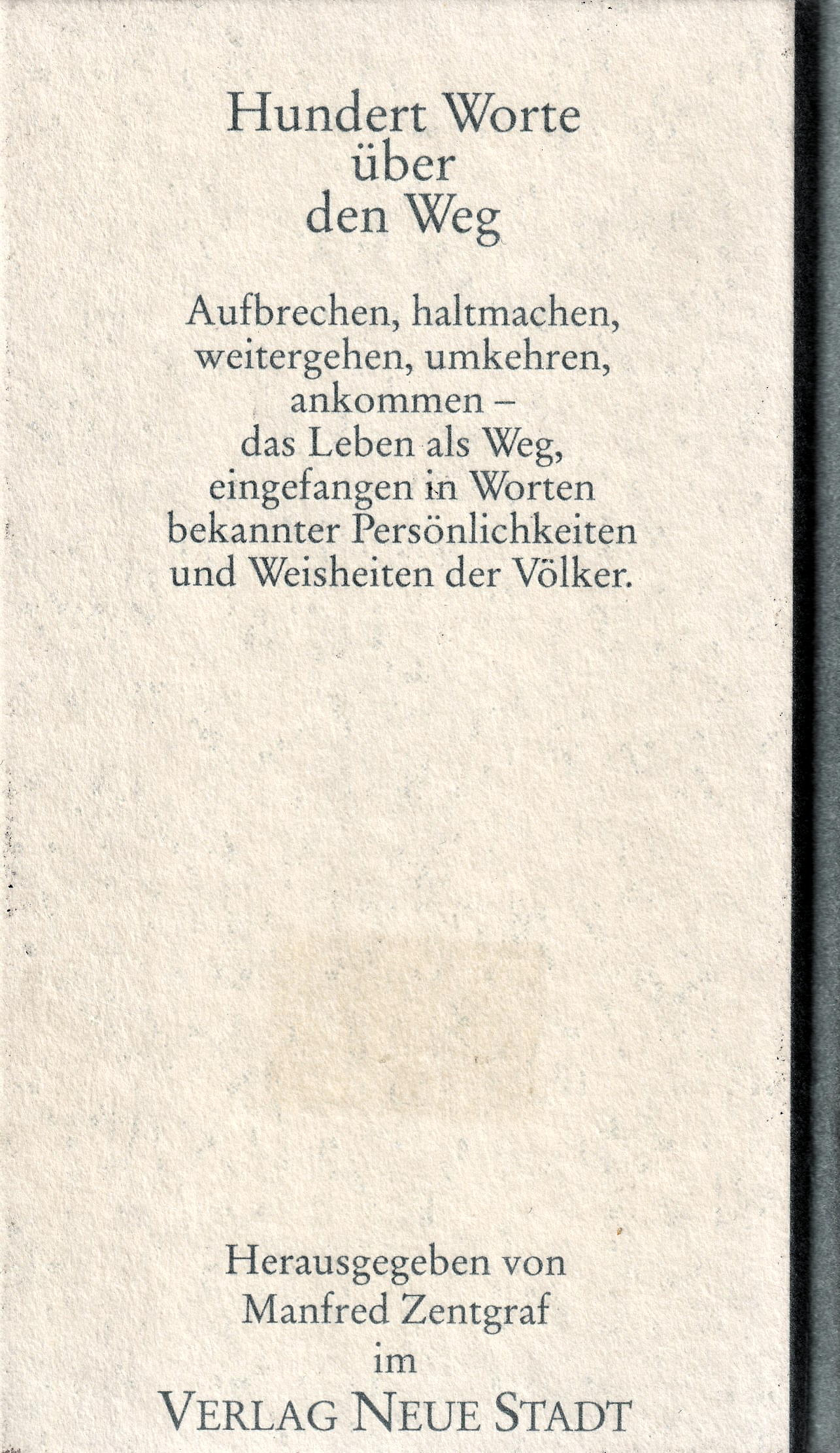 Hundert Worte über den Weg Aufbrechen, haltmachen, weitergehen, umkehren, ankommen das Leben als Weg, eingefangen in Worten bekannter Persönlichkeiten und Weisheiten der Völker.