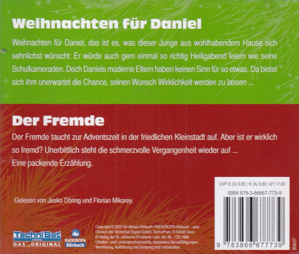 Weihnachten für Daniel, das ist es, was dieser Junge aus wohlhabendem Hause sich sehnlichst wünscht: Er würde auch gem einmal so richtig Heiligabend feiem wie seine Schulkameraden. Doch Daniels moderne Eltern haben keinen Sinn für so etwas. Da bietet sich ihm unerwartet die Chance, seinen Wunsch Wirklichkeit werden zu lassen.