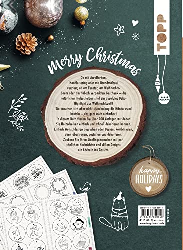 Ob mit Kreidefarben, handlettering oder doch mit Brandmalerei- Holzscheiben sind so vielseitig und schenken uns in der Weihnachtszeit eine natürliche Gemütlichkeit -ob am Fenster, am Weihnachtsbaum, an einem Ast oder als Geschenkanhänger- die Möglichkeiten sind grenzenlos. In diesem Buch finden Sie über 200 Vorlagen mit denen Sie ihre Holzescheiben einfach und schnell dekorieren können. Einfach Design übetragen, aufmalen oder einbrennen, nach Wunsch dekorieren und ran an den Baum. Schnell schön und natürlich.
