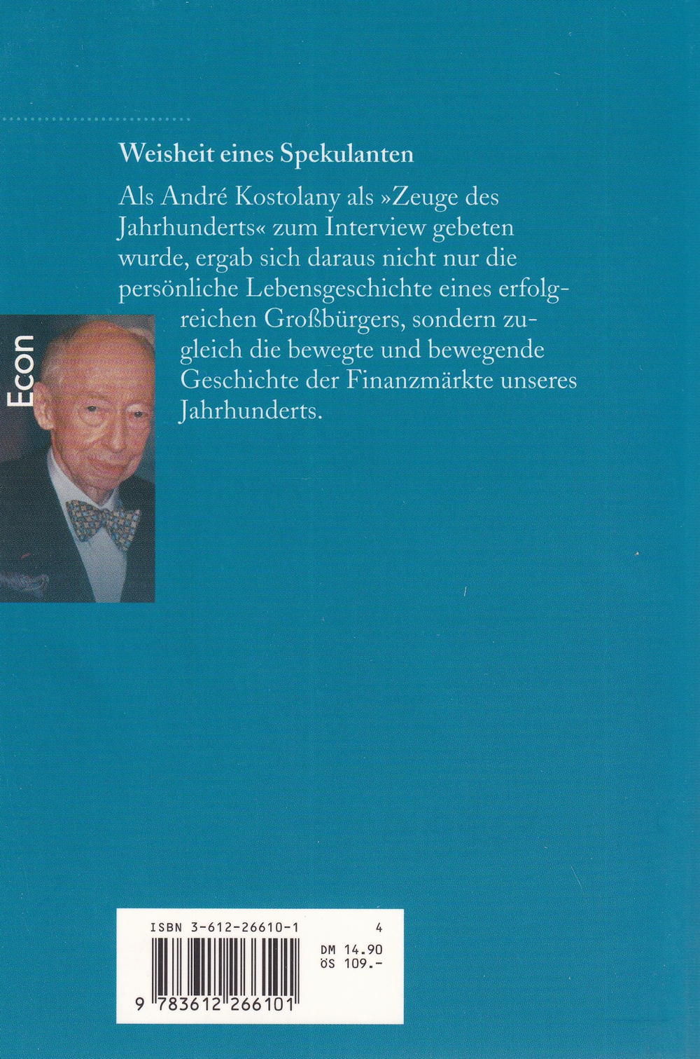 Als André Kostolany als »Zeuge des Jahrhunderts« zum Interview gebeten wurde, ergab sich daraus nicht nur die persönliche Lebensgeschichte eines erfolgreichen Grossbürgers, sondern zugleich die bewegte und bewegende Geschichte der Finanzmärkte unseres Jahrhunderts.