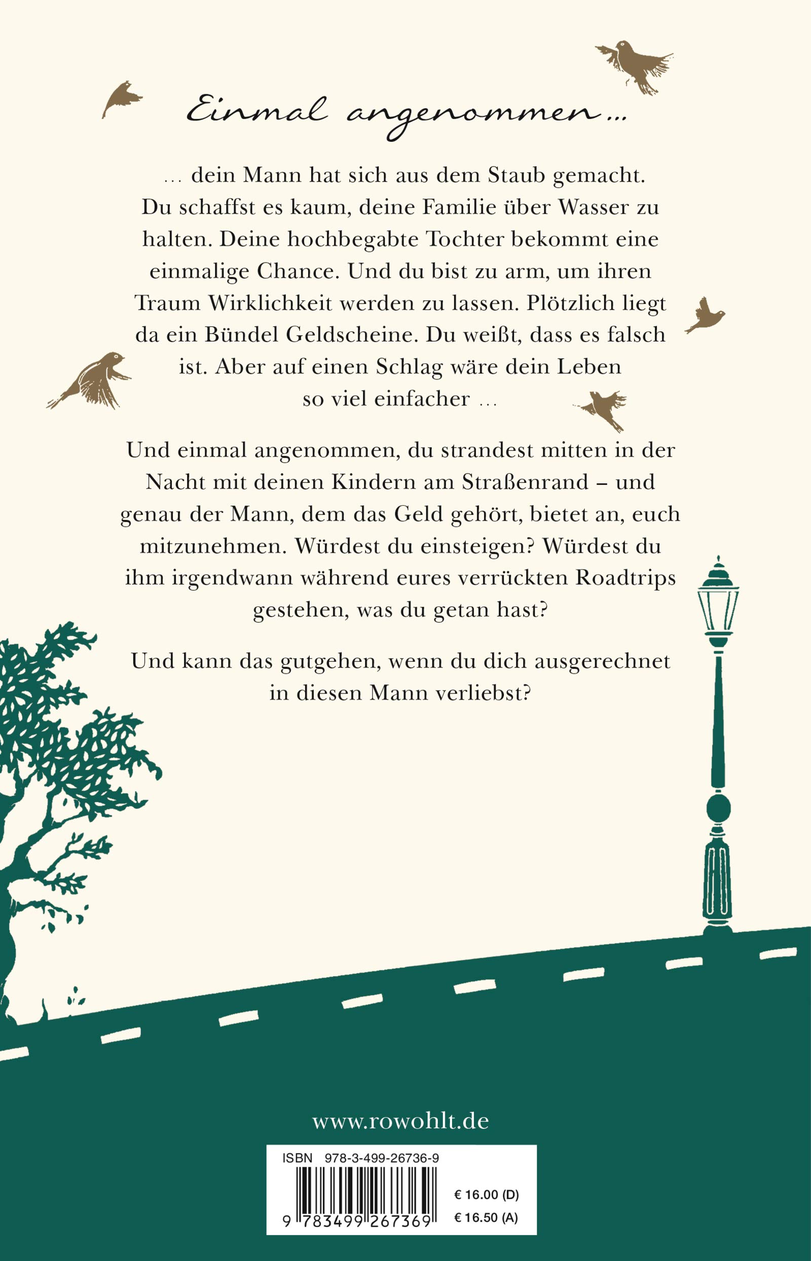 Und einmal angenommen, du strandest mitten in der Nacht mit deinen Kindern am Strassenrand - und genau der Mann, dem das Geld gehört, bietet an, euch mitzunehmen. Würdest du einsteigen? Würdest du ihm irgendwann während eures verrückten Roadtrips gestehen, was du getan hast?
