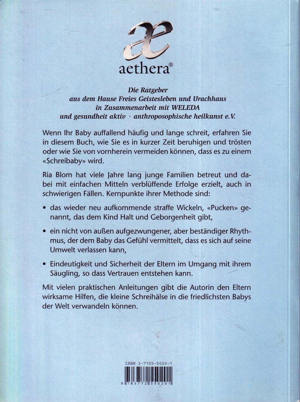 Viele Säuglinge machen ihren Eltern das Leben durch anhaltendes, zermürbendes Schreien schwer. Ria Blom zeigt, wie man mit neu entdeckten traditionellen Methoden Säuglinge wirksam beruhigen kann. Lange wurden die so genannten Drei-Monats-Koliken als Ursache dafür angesehen, dass viele Babys ihre Eltern durch regelrechte Schreianfälle auf eine harte Geduldsprobe stellen. Doch sind sie wirklich auch der wahre Grund? Ria Blom geht in ihrem Buch von ganz anderen Ansatzpunkten aus, und der Erfolg ihrer Methode scheint ihr Recht zu geben: Kinder brauchen vor allem in der ersten Zeit Grenzen und das Gefühl von Sicherheit, sowohl physisch als auch psychisch. Die wieder neu aufkommende Methode des straffen Wickelns, Pucken genannt, gibt dem Kind Halt und Geborgenheit. Es verhindert unkontrollierte Bewegungen und bewirkt, dass es sich in seinen Decken selbst spürt. Ein nicht von aussen aufgezwungener, aber verlässlicher Rhythmus vermittelt dem Baby das Gefühl, dass es sich auf seine Umwelt verlassen kann. Mit vielen praktischen Anleitungen gibt die Autorin den Eltern wirksame Hilfen, die kleine Schreihälse in die liebsten Babys der Welt verwandeln können.