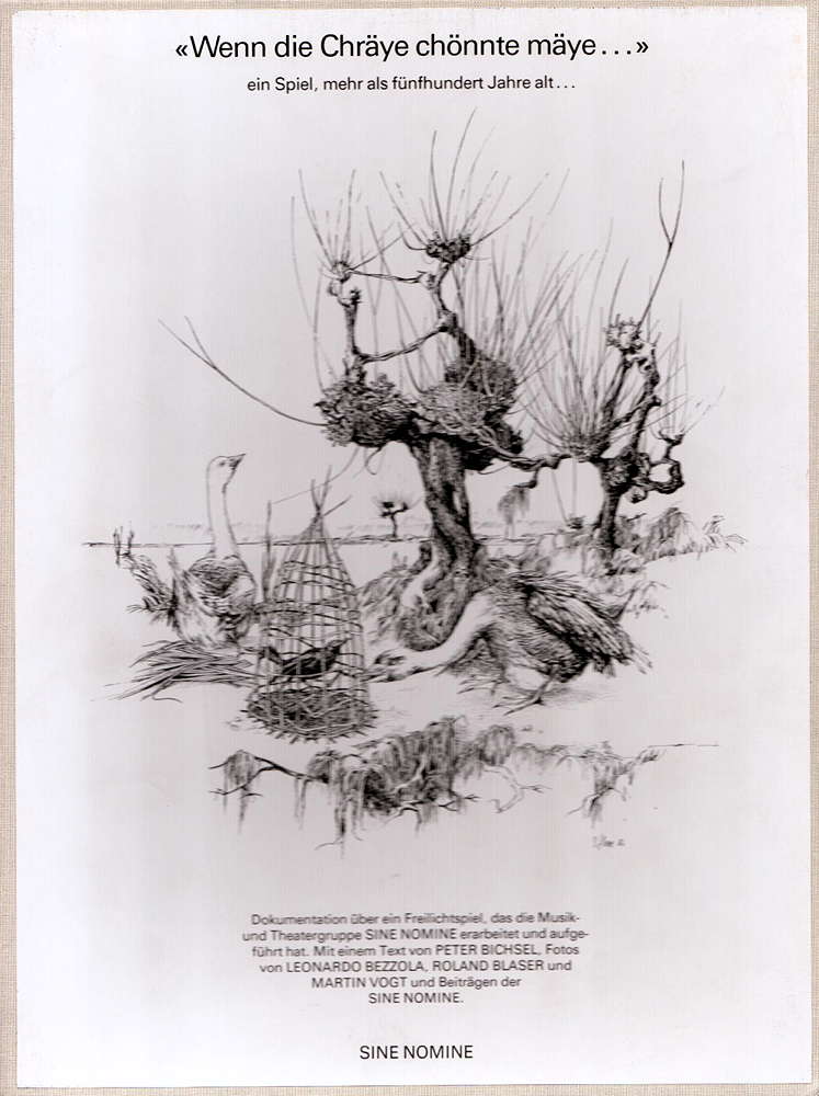 Ein Spiel, mehr als fünfhundert Jahre alt .... Dokumentation über ein Freilichtspiel, das die Musik- und Theatergruppe «Sine nomine» erarbeitet und aufgeführt hat. Mit einem Text von Peter Bichsel, Fotos von Leonardo Bezzola, Roland Blaser und Martin Vogt und Beiträgen der «Sine nomine». …