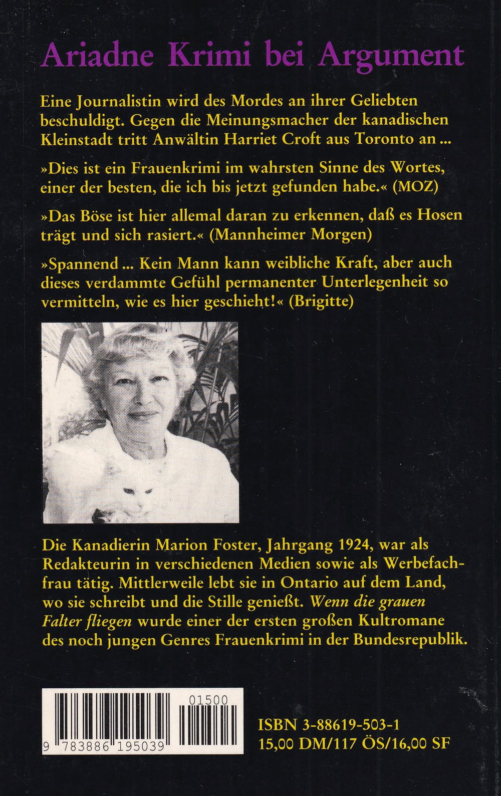 Marion Foster, geboren 1924, lebte bis 1986 in Toronto. Sie war Redakteurin bei verschiedenen Zeitungen und Rundfunksendern und arbeitete zeitweilig in einer Webeagentur. Sie hat mehrere Romane veröffentlicht und schrieb auch unter dem Namen Shirley Shea. Bis zu ihrem Tod 1997 lebte Marion Foster mit ihrer Lebensgefährtin in Chatsworth, einem kleinen Dorf nördlich von Toronto.