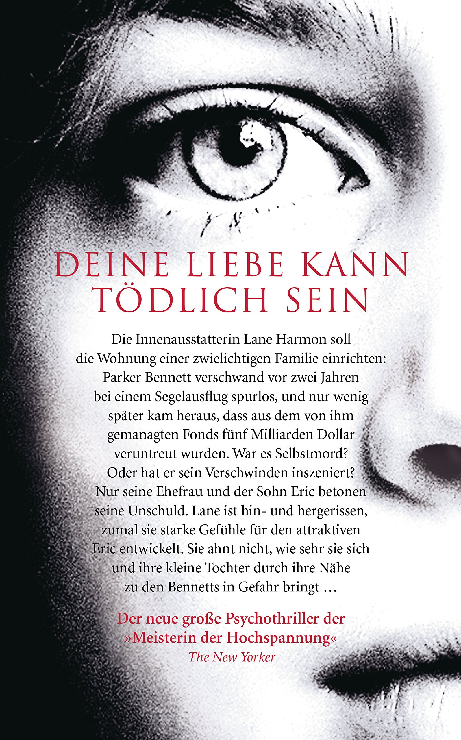Deine Liebe kann tödlich sein Die Innenarchitektin Lane Harmon, alleinerziehende Mutter der vierjährigen Katie, erhält einen grossen neuen Auftrag: Sie soll das Stadthaus der Bennetts neu ausstatten. Diese Familie hat - wie Lane bald herausfindet - eine dunkle Geschichte: Der Senior, Peter, verschwand vor zwei Jahren bei einem Segelausflug spurlos - und nur wenig später kam heraus, dass aus dem von ihm gemanagten Fonds fünf Milliarden Dollar veruntreut wurden. War es Selbstmord? Oder hat er sein Verschwinden inszeniert? Nur seine Familie glaubt fest an seine Unschuld. Und Lane ist zusehends hin- und hergerissen, denn sie hat sich in den attraktiven Sohn des Hauses verliebt. Sie ahnt nicht, wie sehr sie sich und ihre kleine Tochter dadurch in Gefahr bringt ...