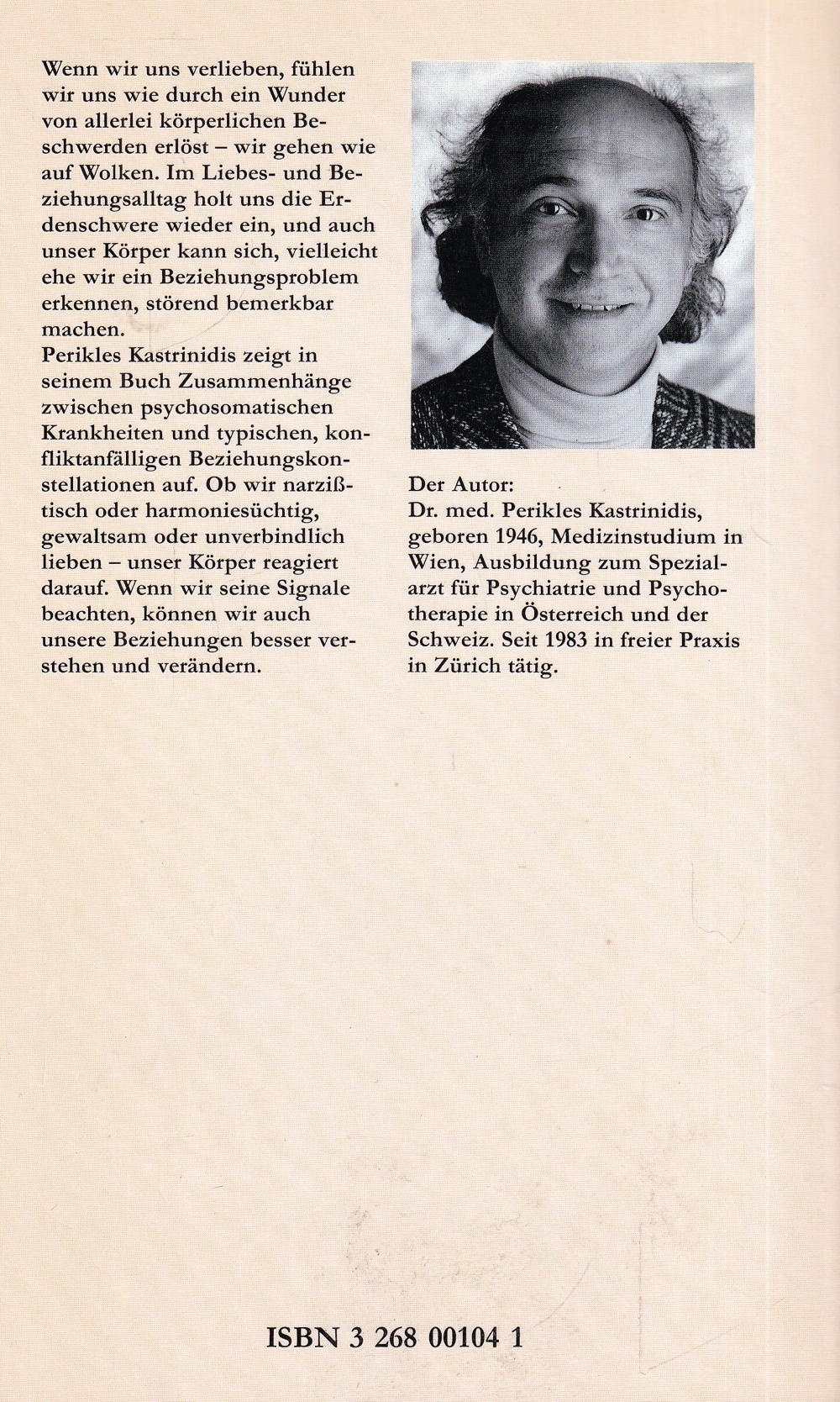 Perikles Kastrinidis zeigt in seinem Buch Zusammenhänge zwischen psychosomatischen Krankheiten und typischen, konfliktanfälligen Beziehungskonstellationen auf. Ob wir narzisstisch oder harmoniesüchtig, gewaltsam oder unverbindlich lieben - unser Körper reagiert darauf. Wenn wir seine Signale beachten, können wir auch unsere Beziehungen besser verstehen und verändern.