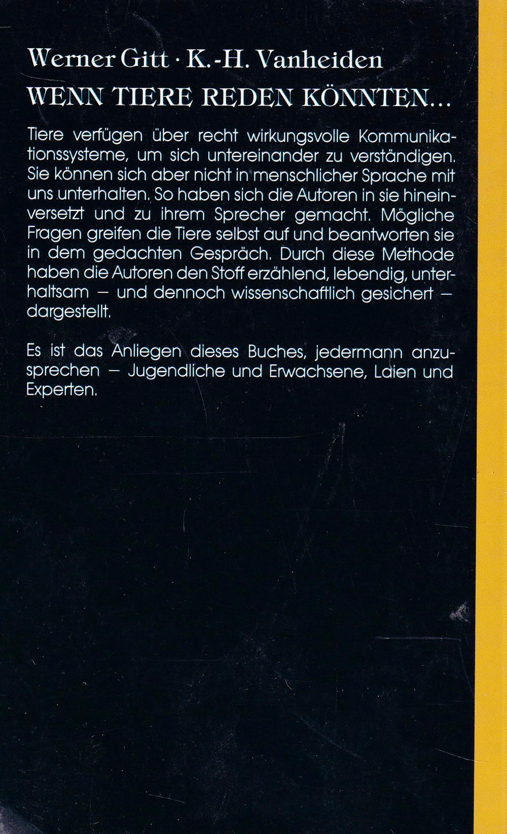 Sie können sich aber nicht in menschlicher Sprache mit uns unterhalten. So haben sich die Autoren in sie hineinversetzt und zu ihrem Sprecher gemacht. Mögliche Fragen greifen die Tiere selbst auf und beantworten sie in dem gedachten Gespräch. Durch diese Methode haben die Autoren den Stoff erzählend, lebendig, unterhaltsam und dennoch wissenschaftlich gesichert dargestellt.