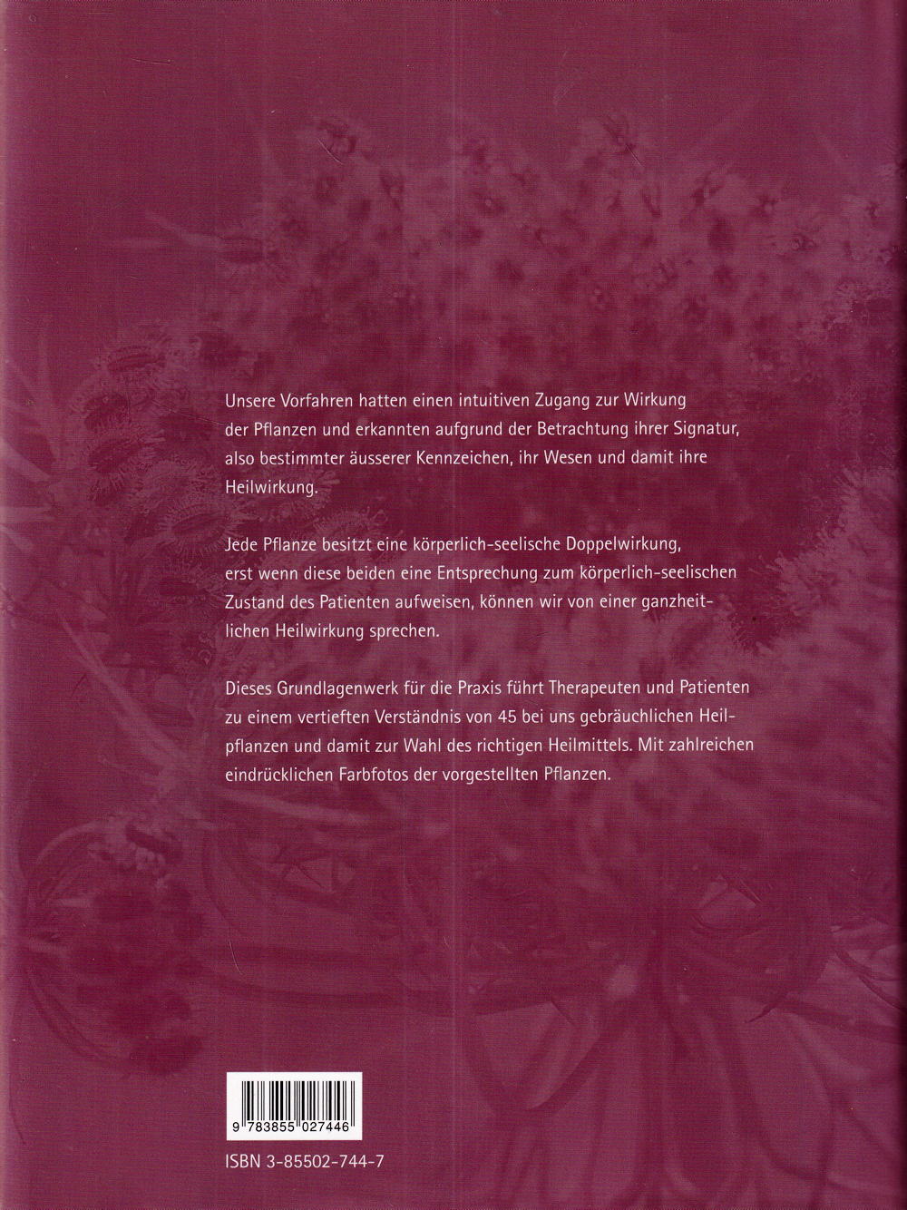 Unsere Vorfahren hatten einen intuitiven Zugang zur Wirkung der Pflanzen und erkannten aufgrund der Betrachtung ihrer Signatur, also bestimmter äusserer Kennzeichen, ihr Wesen und damit ihre Heilwirkung. Jede Pflanze besitzt eine körperlich-seelische Doppelwirkung, erst wenn diese beiden eine Entsprechung zum körperlich-seelischen Zustand des Patienten aufweisen, können wir von einer ganzheitlichen Heilwirkung sprechen. Dieses Grundlagenwerk für die Praxis führt Therapeuten und Patienten zu einem vertieften Verständnis von 45 bei uns gebräuchlichen Heilpflanzen und damit zur Wahl des richtigen Heilmittels. Mit zahlreichen eindrücklichen Farbfotos der vorgestellten Pflanzen.