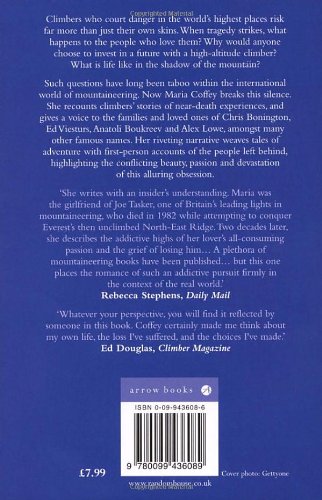 Climbers who court danger in the world's highest places risk far more than just their own skins. When tragedy strikes, what happens to the people who love them? Why would anyone choose to invest in a future with a high-altitude climber? What is life like in the shadow of the mountain? Such questions have long been taboo within the international world of mountaineering. Now Maria Coffey breaks this silence. She recounts climbers' stories of near-death experiences, and gives a voice to the families and loved ones of Chris Bonington, Ed Viesturs, Anatoli Boukreev and Alex Lowe, amongst many other famous names. Her riveting narrative weaves tales of adventure with first-person accounts of the people left behind, highlighting the conflicting beauty, passion and devastation of this alluring obsession.