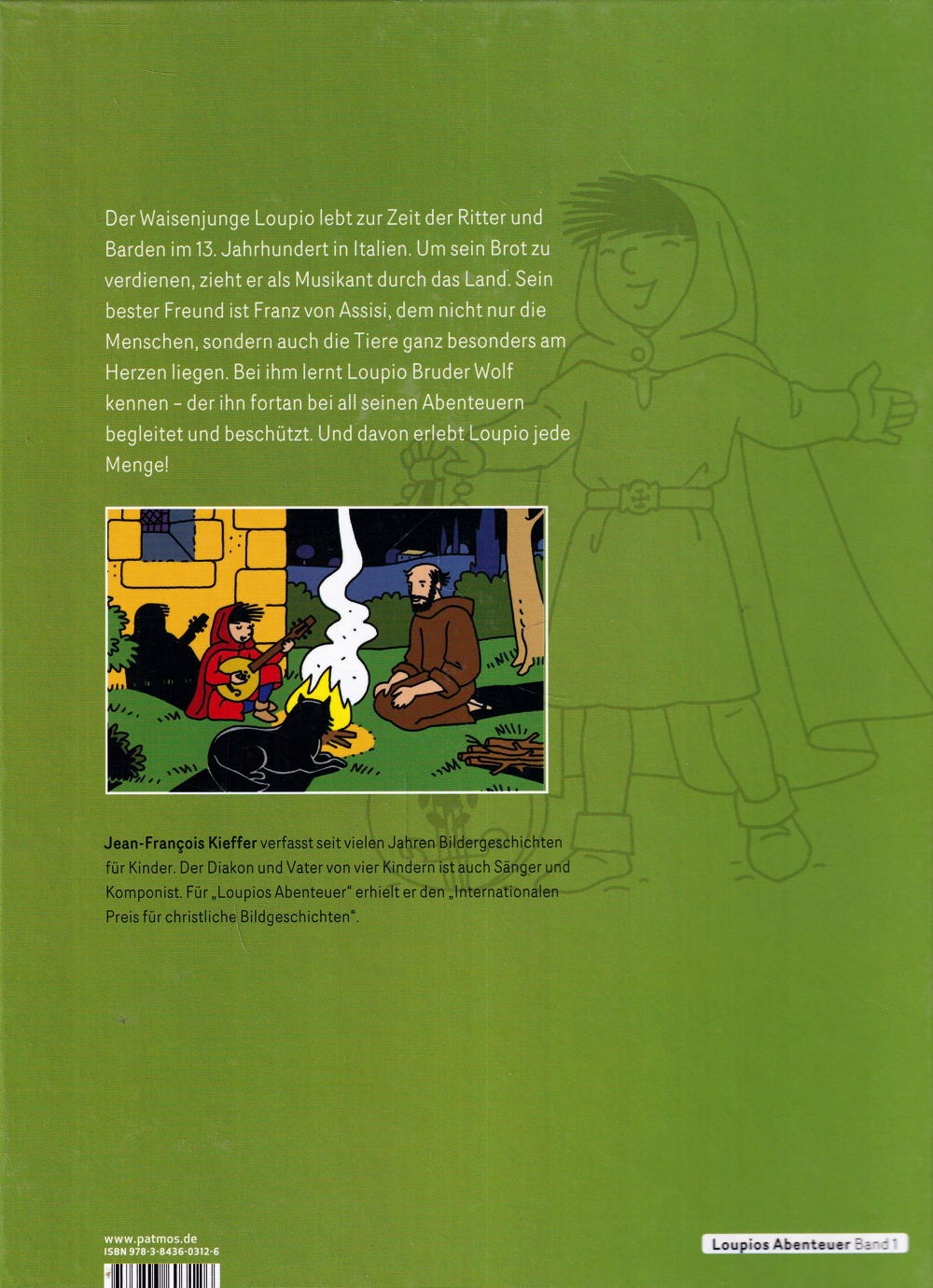 Spannende Abenteuer mit Franz von Assisi. Loupio ist ein Waisenjunge und lebt zur Zeit der Ritter und Barden im 13. Jahrhundert in Italien. Um sein Brot zu verdienen, zieht er als Musikant durch das Land. Sein bester Freund ist Franz von Assisi, dem nicht nur die Menschen, sondern auch die Tiere ganz besonders am Herzen liegen. Bei ihm lernt Loupio Bruder Wolf kennen und fortan begleitet und beschützt er ihn bei all seinen Abenteuern. Und davon erlebt Loupio jede Menge! - Gewinner des internationalen "Preises für christliche Bildergeschichten". - ein kurzweiliges Lesevergnügen für Klein und Gross