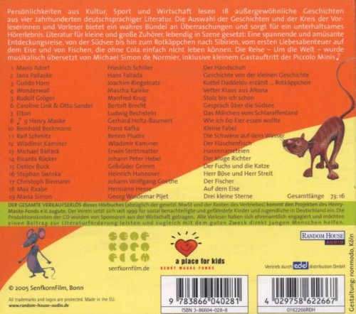 "Das Hörbuch ist anschaulich gemachte Literatur sowohl für kleine als auch große Zuhörer. Die Texte klassischer wie moderner Schriftsteller sind derart lebendig in Szene gesetzt, dass sie nicht nur unterhalten, sondern auch neugierig machen - und Lust auf mehr."